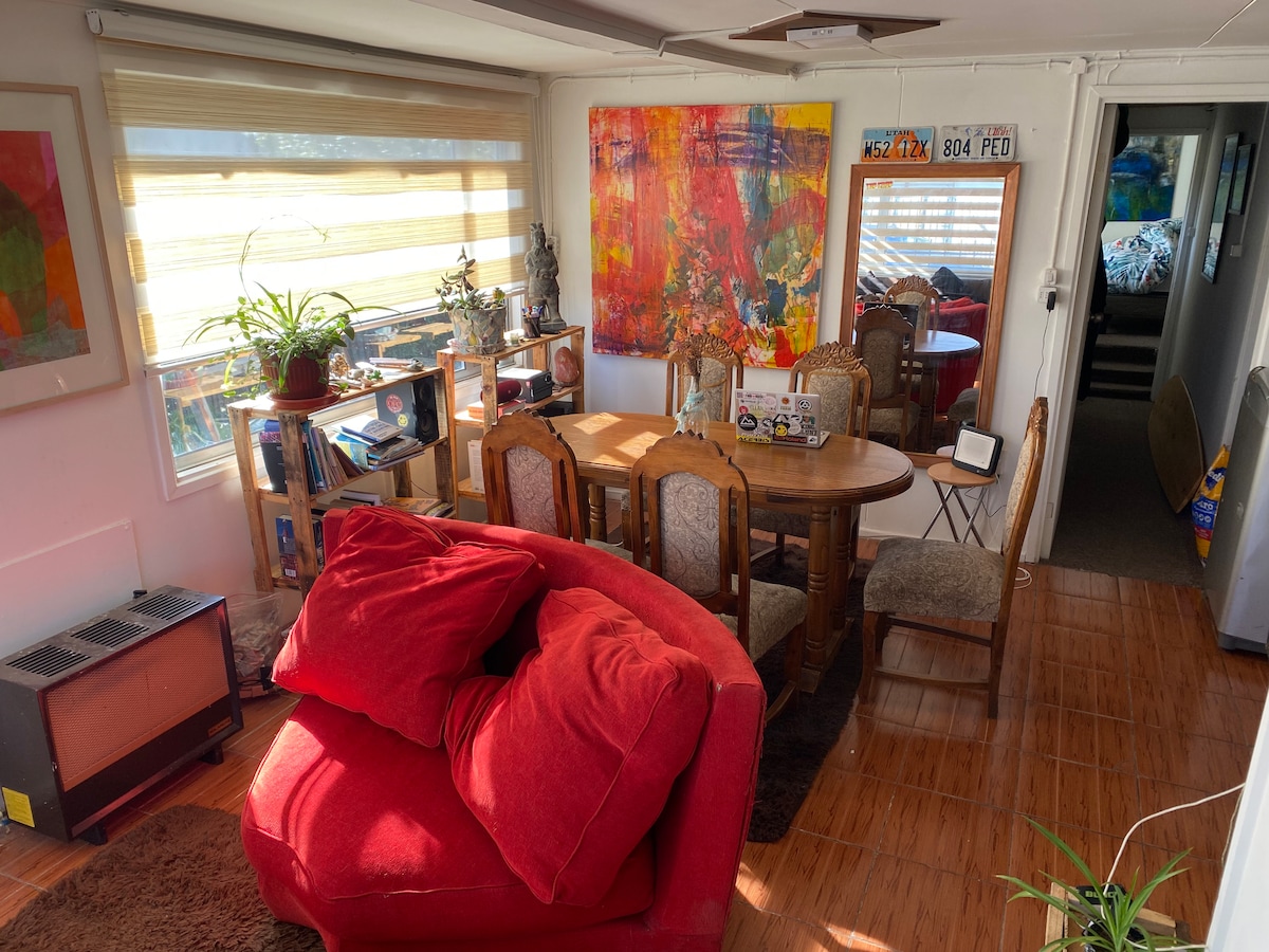 Opustite se sa cijelom porodicom u ovom mirnom smještaju. Uživajte u miru u našoj brvnari, koja se nalazi samo 10 minuta vožnje od centra Puerto Natalesa. Sa mirnom atmosferom i okruženo prirodom. Brvnara ima dvije udobne sobe: jednu sa bračnim krevetom i 1,5 krevet, a drugu sobu sa krevetom za jednu osobu. Bezbjedno i opuštajuće okruženje je idealno za one koji žele da se odvoje i uživaju u miru.