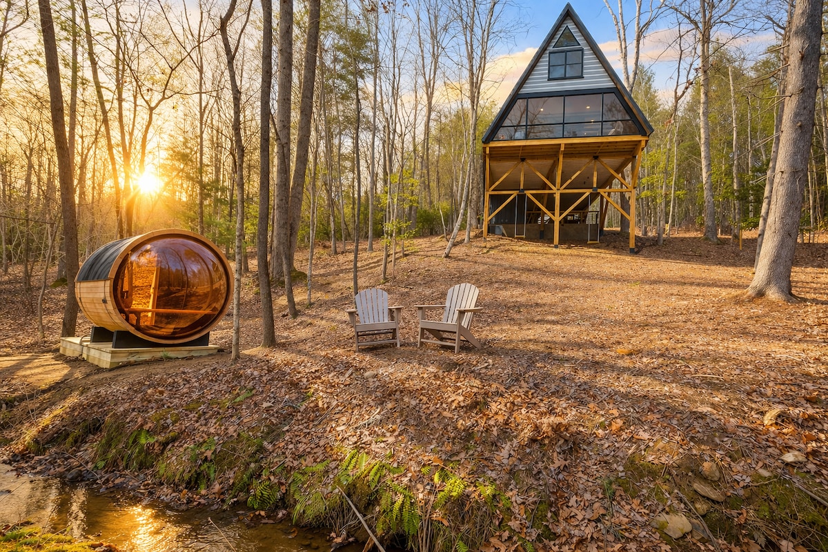 Reece Retreats vas poziva da pobjegnete u Whisper Creek Retreat, luksuznu kućicu na drvetu u obliku slova A izgrađenu 2025. godine u blizini Blu Ridža u Džordžiji. Smještena na privatnoj parceli pored potoka, ova brvnara sa 2 spavaće sobe i 2 kupatila može da primi 6 osoba i ima natkriveni balkon, saunu, hidromasažnu kadu, ognjište, vanjski prostor za opuštanje sa TV-om i igralište. Uživajte u prozorima od poda do plafona, potpuno opremljenoj kuhinji, brzom Wi-Fi mrežom i potpunom spokoju.
