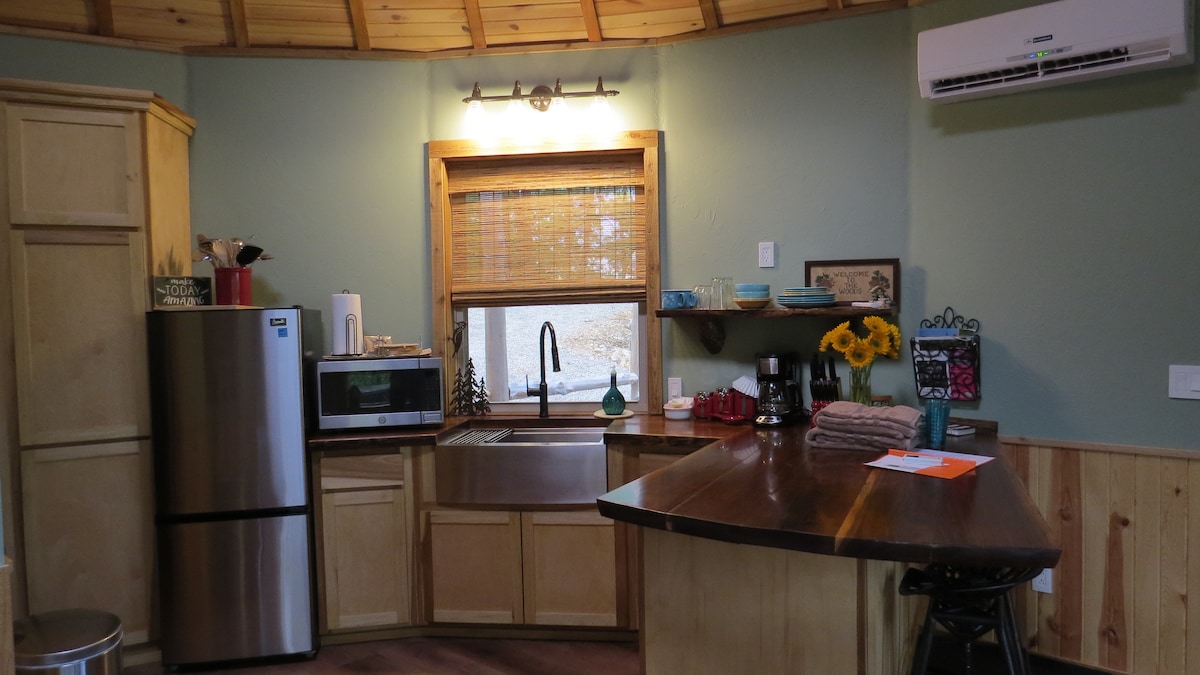 Sklonite se od svega toga kada ostanete pod zvezdama u "Wild+Wander" -u. Ova lagana, 30 stopa visoka jurta pruža svu udobnost doma dok bježi od svakodnevnice. Savršeno utočište za parove, ova jurta ima kompletnu kuhinju, spavaću sobu i kupatilo, hidromasažnu kadu, šporet i šarm koji ne možete da pronađete nigde drugde. Smeštena u brdima, jurta se nalazi na 5 hektara sa panoramskim pogledom na planine. Zaštićen od buke i svetlosti grada, a ipak udaljen samo 20 minuta od glavne ulice, ovaj objekat je skriveno utočište.