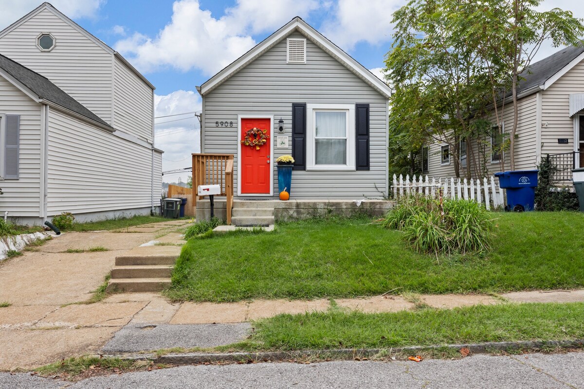 ** PRIKLADNO ZA PORODICE ** (Pogledajte detalje o predmetima koji su na raspolaganju porodicama) Ovaj dom sa 2 spavaće sobe ima sve što vam treba za opuštajuće putovanje! Potpuno ažuriran sa elegantnim i udobnim nameštajem i dekorom. Potpuno opremljena kuhinja i nevjerovatno dvorište/terasa. Mirna ulica pored jednog od najboljih meksičkih restorana u Sent Luisu - Hacienda - (možete da prošetate 2 minuta) Blizu svega! 13 minuta do zoološkog vrta Sent Luis 10 minuta do Magične kuće 15 minuta do stadiona Buš i stanice Union