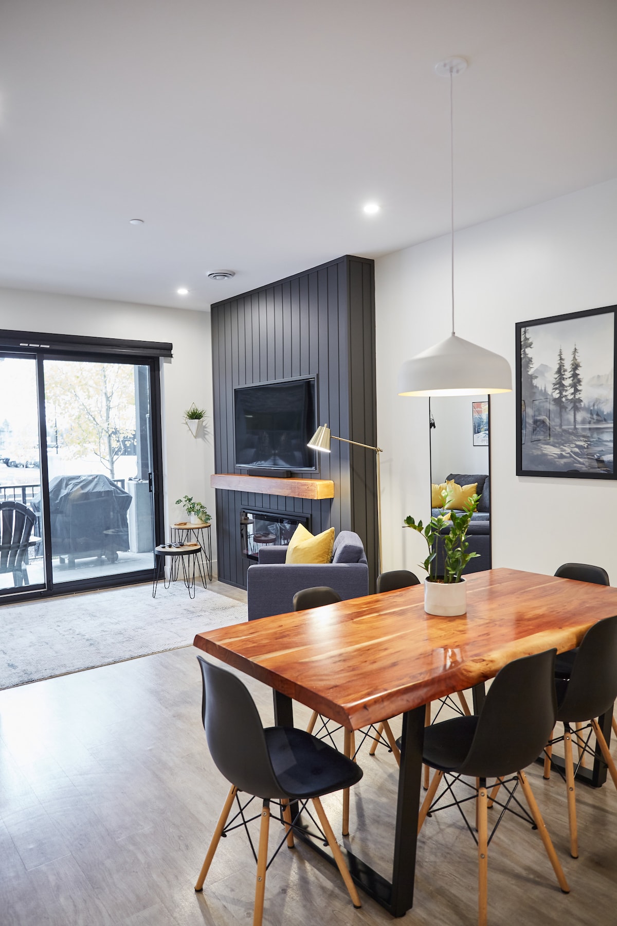 Dobro došli na mjesto u borovima. Bićete tretirani sa svojom privatnom hidromasažnom kadom dok uživate u pogledu na planine na prostranoj terasi. Spavanje na potpuno novim dušecima, udobno spava 6 osoba. Ova potpuno nova jedinica ima udoban električni kamin, lokalnu umetnost i kafu i udobne vrhunske završne obrade. Skladište je uključeno za bicikle i skijašku opremu, zajedno sa 1 grijanim podzemnim parking mestom. Mašina za pranje/sušenje veša u punoj veličini. Dođite i uživajte u snegu i suncu!