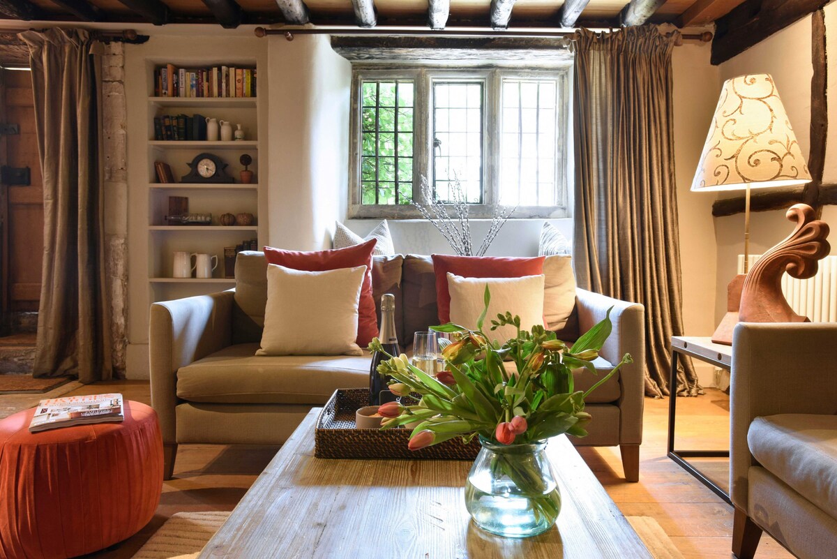 Luksuzni samouslužni dom u srcu zamka Kombe, savršen za porodične pauze ili romantične vikende provedene ispred vatre. Prostrane spavaće sobe (uključujući bračni krevet sa četiri plakata) i raskošnom posteljinom garantuju opuštanje. Imanje je izgrađeno 1490. godine i jedna je od najstarijih kuća u selu, zadržala je svoje obilje karaktera, uključujući originalni grb Henryja oslikan iznad kamina. Priča se da je Henri VIII posetio selo i ovo je oslikano u njegovu čast. Iako je izgrađen u 15. veku, ovaj objekat je prelepo renoviran i ostaćete u luksuzu! Sa najboljim dušecima i posteljinom, bićete počašćeni samouslužnim doživljajem od 5 zvezdica. Tu je i hidromasažna kada za 4-6 osoba na terasi iza kuće, nažalost, zbog energetske krize i troškova grejanja i čišćenja, nudimo ovo kao opcionu funkciju i naplaćujemo dodatnu naknadu od 180 GBP po boravku ukoliko želite da ga koristite. Imamo odlično grejanje u celoj kući, a šporet na drva u dnevnoj sobi baca ogromnu količinu toplote. Ovo je najlepše selo u Engleskoj (zvanično se smatra!) i niz brojnih filmova i predstava iz određenog perioda. Udaljeni smo dva minuta hoda do kuće Manor zajedno sa restoranom sa Mišelinovim zvjezdicama 'Bybrook', golf terenom svjetske klase, dvorcem Combe Circular i beskrajnim zadivljujućim šetnjama duž rijeke. Postoje dva paba, White Heart nudi nevjerovatne sendviče i toplu hranu. Sal i Dejv su ustanova za kombe dvorac, a ovo je pab u kojem većinu vremena provodimo. Castle Inn je sada u vlasništvu hotela Manor. Hrana je vrhunska i cene su je pratile. Preporučujem da rezervišete i dobro mesto za večeru. Imajte na umu da je besplatan parking dostupan ispred hotela Castle Inn ili paba Vajt Hart, a dodatni besplatan parking dostupan je uzbrdo od glavnog trga, što je otprilike 2 minuta hoda. Međutim, u špicu perioda gužve možete naći parking koji je uzdignut uz brdo nego što želite, izvinite, tokom vruće subote mnogi ljudi dolaze da uživaju u šetnji po selu i može da bude prometno. Možete da koristite prostor izvan stare sudske kuće za utovar i istovar, međutim, preporučujemo vam da ne ostavljate auto parkiran duže vreme jer postoji saobraćajni upravnik koji praktikuje besplatnu raspodelu karata za parkiranje bez predrasuda! Samo proverite da li ste parkirani na žutoj liniji. Ovo je mesto gde možete da radite sve ili ništa. Savršeno za opuštanje ispred naše peći na drva u veličanstvenom kaminu. Nikada nećete htjeti da odete! Dok se kuća nalazi u srcu zamka Kombe, poštujte naše komšije i ne zaboravite da buku svedete na minimum kada padne mrak.