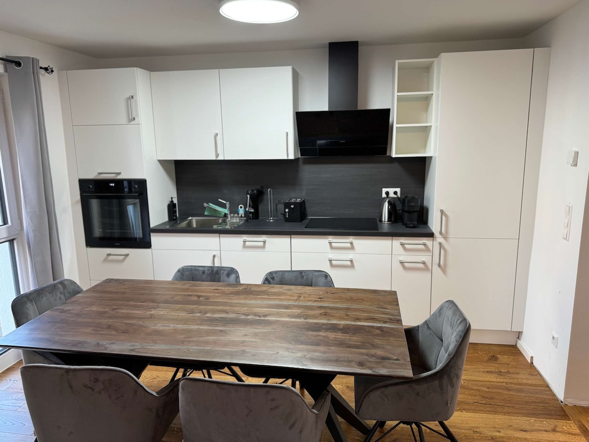 Dobro došli u KC Hostings! Naš prostrani luksuzni stan sa 3 sobe na centralnoj lokaciji u Reutlingenu nudi moderan, ukusan privremeni dom - idealan za porodice, poslovne putnike ili grupe prijatelja. Dvije odvojene spavaće sobe, svijetli dnevni boravak/trpezarija i potpuno opremljena kuhinja pružaju fleksibilnost i udobnost - za najviše 4 osobe. Moderno kupatilo sa tuš kabinom i zasebnim toaletom osigurava funkcionalan raspored prostorija, posebno za nekoliko gostiju. Mirna, ali centralna lokacija