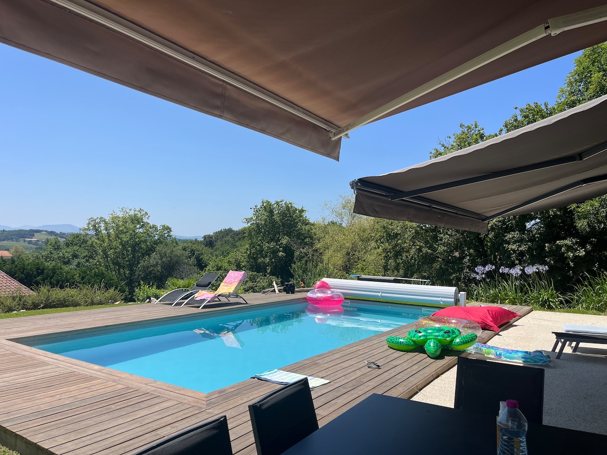 Mirni stan okrenut prema jugu od oko 40 m2 u dupleksu sa prelijepim pogledom na Pirineje. Objekat je povezan sa objektom vlasnika. Bazen dostupan našim domaćinima od 17:00 Mala privatna terasa sa ležaljkom i stolom na otvorenom. Udaljeni ste 15 minuta od Bajona i 30 minuta od plaža. Prikladno se nalazi da zablista između Iner Baskije i Baskije.