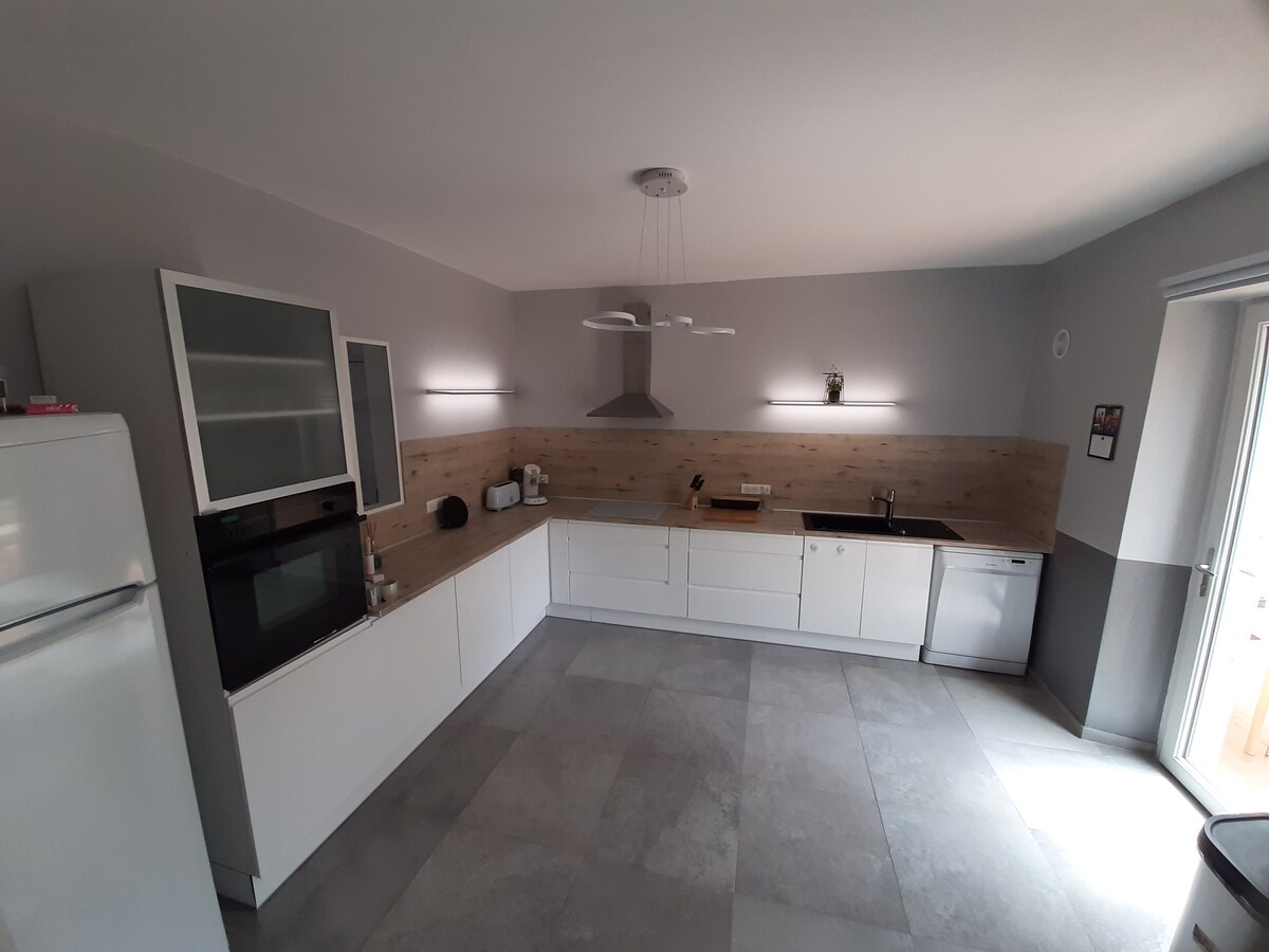 Opustite se u ovom jedinstvenom i neometanom domu, sa XXL hidromasažnom kadom za nezaboravan trenutak opuštanja. U prirodi i opuštajućem okruženju, dođite i pobjegnite u ovaj mali kutak sreće sa privatnom hidromasažnom kadom, bračnim krevetom, opremljenom kuhinjom, šporetom, mini rernom, mikrotalasnom rernom , frižiderom, čajnikom , aparatom za kafu Dolce Gusto, TV-om , kupatilom sa tušem . Amazon , Netflix Privatna terasa sa stolom , stolicama , ležaljkama za sunčanje , dvostrukom visećom ležaljkom. Čista i zen atmosfera .