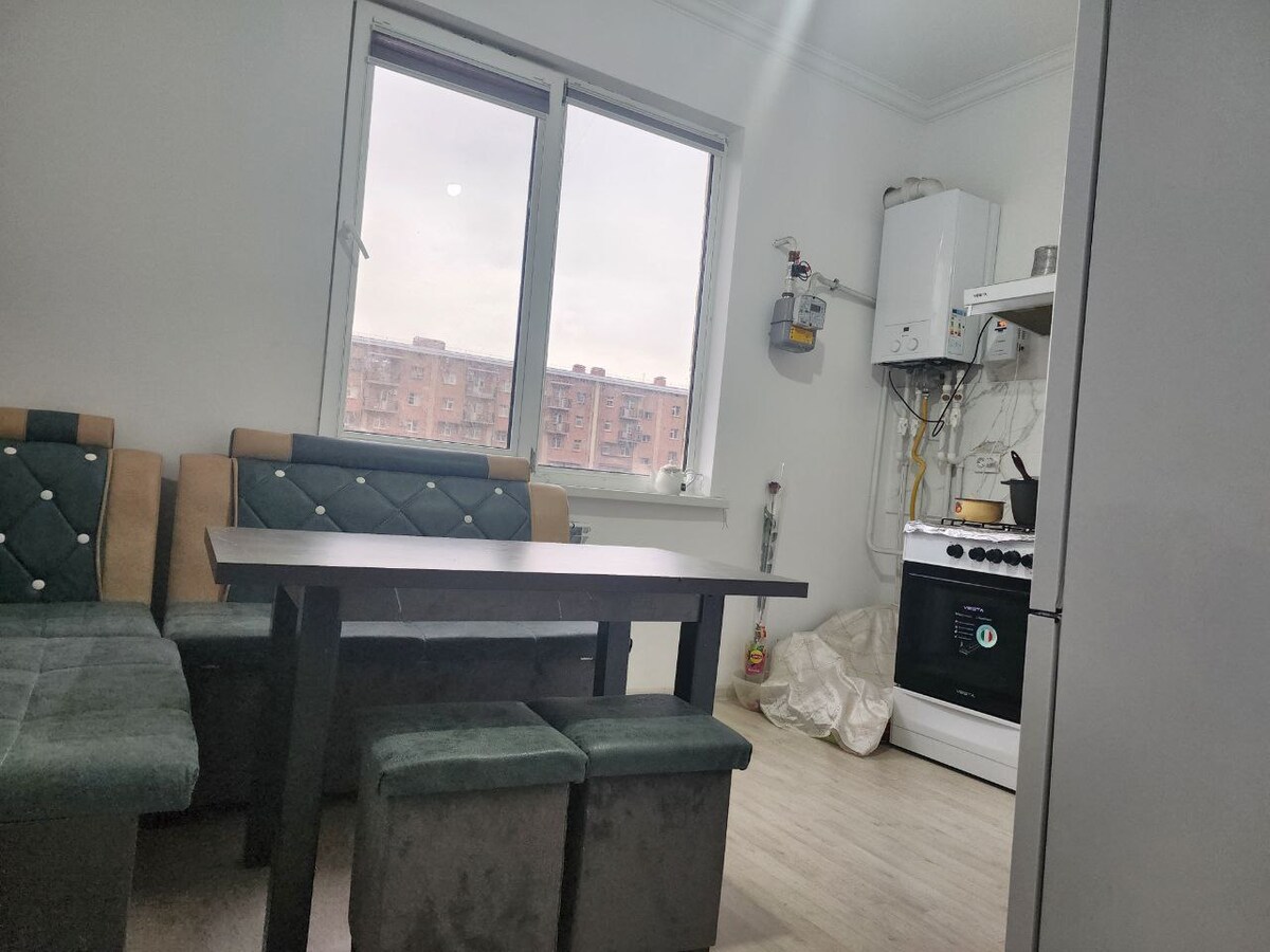 Что вас ждёт: • Уютная спальня с комфортной кроватью и большим шкафом • Просторная гостиная с мягким ковром и рабочим столом • Балкон с цветами и потрясающим панорамным видом на город • Современный ремонт, спокойная атмосфера и приятное освещение 📍 Идеальное расположение: Квартира находится в новом жилом комплексе, рядом с магазинами, кафе, остановками транспорта. Удобный доступ к основным достопримечательностям и города. 🚿 Wi-Fi | 🛏 Чистое постельное | 🌇 Вид с высоты | 🔒 Безопасный