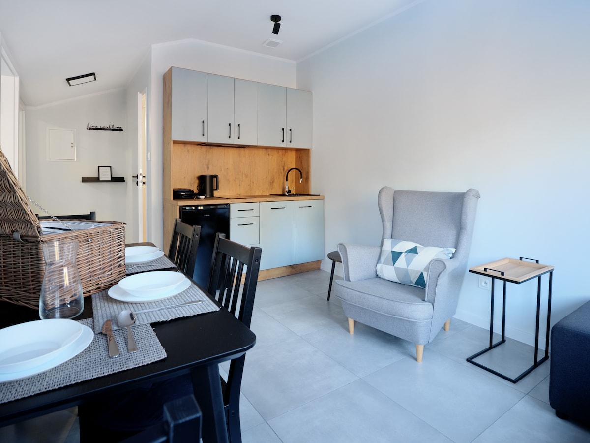 Udoban i samostalan stan koji se nalazi u srcu Ustke. Savršeno mjesto za odmor za parove i porodice s djecom. Gostima obezbjeđujemo: – spavaće sobe sa dvosjedom na razvlačenje - dnevni boravak sa udobnim dvosjedom na razvlačenje, Wi-Fi - potpuno opremljena kuhinja - kupatilo sa kadom Stan se nalazi u odličnom susjedstvu – u blizini prodavnica, autobuske stanice. Do šetališta, plaže i prodavnica hrane može se stići za manje od 10 minuta. Ljubimci su dobrodošli