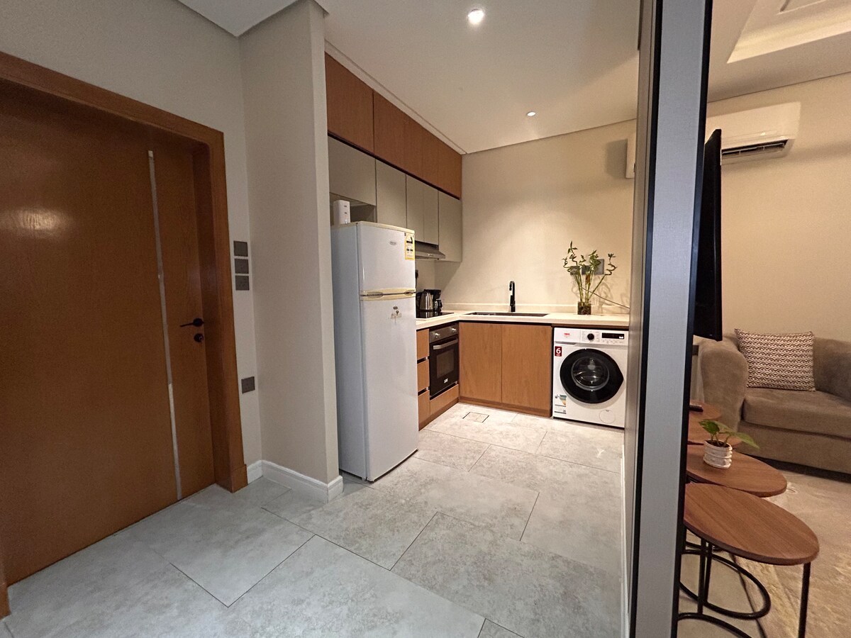 Elegantan hotelski apartman u prizemlju. Apartman ima moderan dizajn i moderan nameštaj. Apartman se nalazi u gradu Hofuf u južnom naselju Al-Sulajmanija na strateškoj lokaciji u blizini svih usluga. Apartman se sastoji od: dnev boravka, hotelske spavaće sobe sa glavnim krevetom, privatnog ulaza za automobil, pametnog sistema za ulazak, kutka za kafu, čajnika, mikrotalasne pećnice, frižidera i spoljnog prostora za sedenje