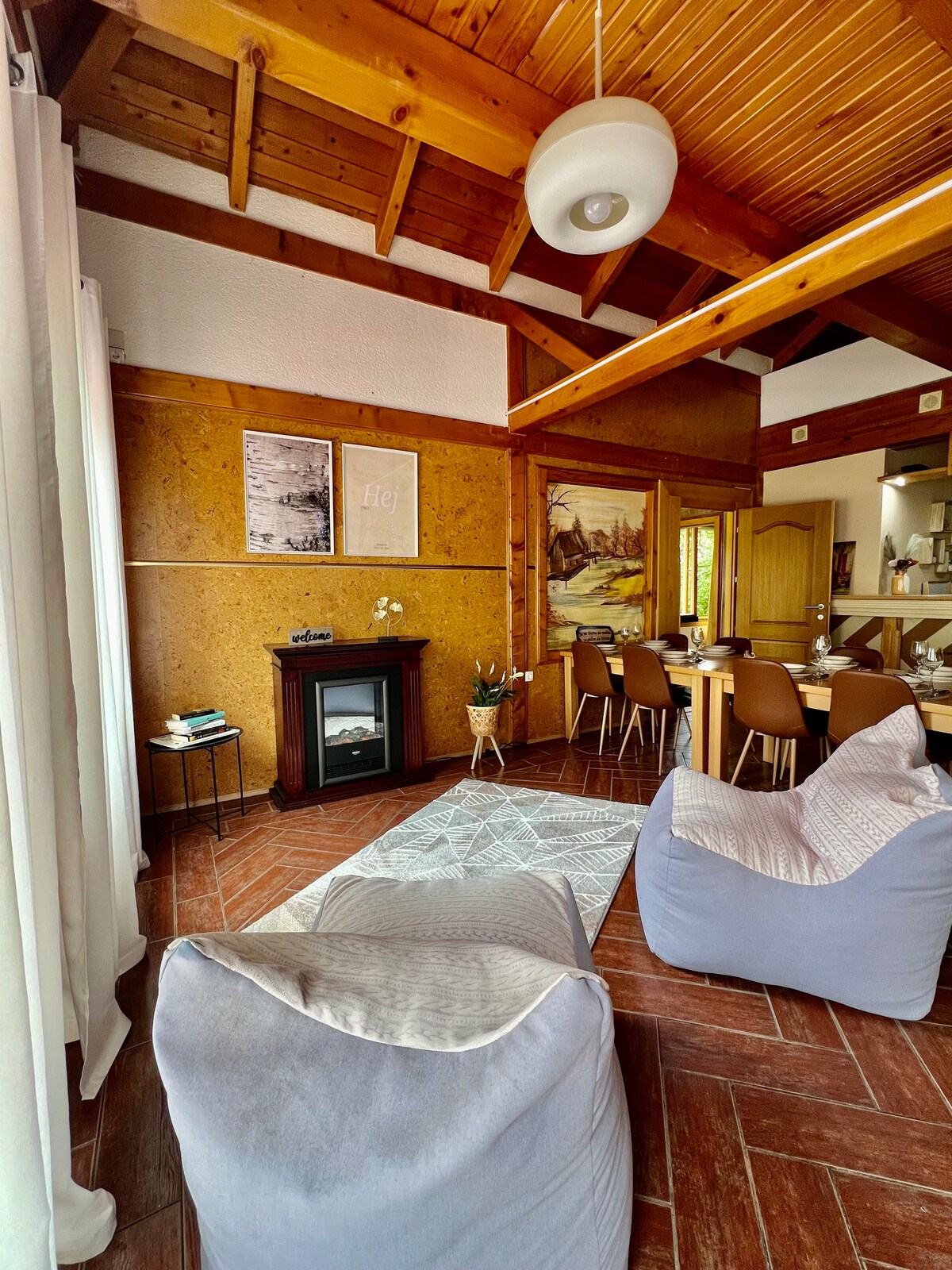 Kuće u obliku slova A koje se nalaze u miru šume. Jutro počinje cvrkutom ptica, a dani su ispunjeni aktivnostima na otvorenom. Naše seoske kuće nude savršen spoj udobnosti i prirode, idealno mjesto za opuštanje. Savršen spoj rustikalnog ambijenta i moderne udobnosti. Spavaća soba u galeriji s pogledom na nadstrešnicu, večernje druženje na mekom kauču, savršeno opremljena kuhinja za pripremu jutarnje kafe i brzog obroka, vožnja kanuom na rijeci Odri, jahanje konja, jahanje, vožnja biciklom, roštilj, kamin.