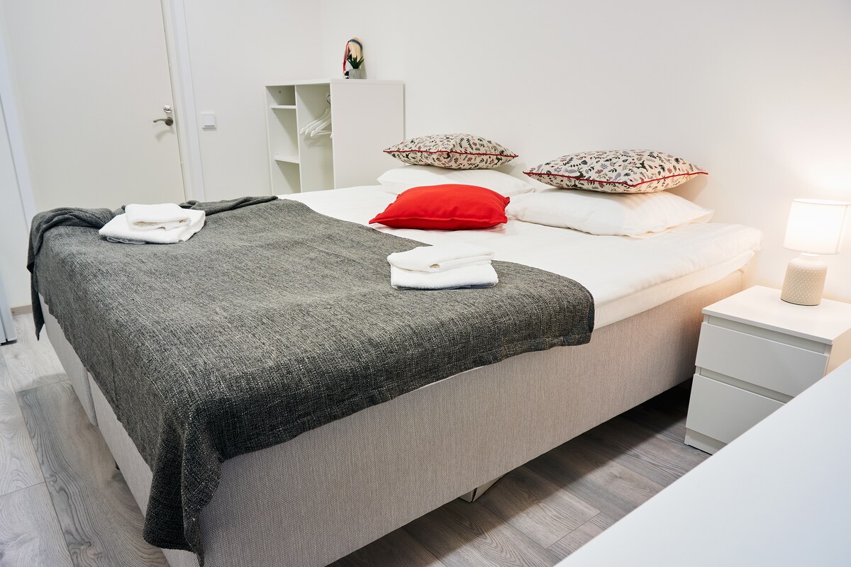 A comfortable private room for two guests in Kuninkainen, Espoo. The small kitchenette is equipped with microwave oven, refrigerator, stove, coffee maker, water boiler and kitchen supplies. The room has two single beds, a television and two armchairs. The bathrooms are shared with other guests. The nearest bus stop and grocery store are within easy walking distance. Sello shopping center is only 3 kilometers away. Bed linens and Wi-Fi are included in the price.