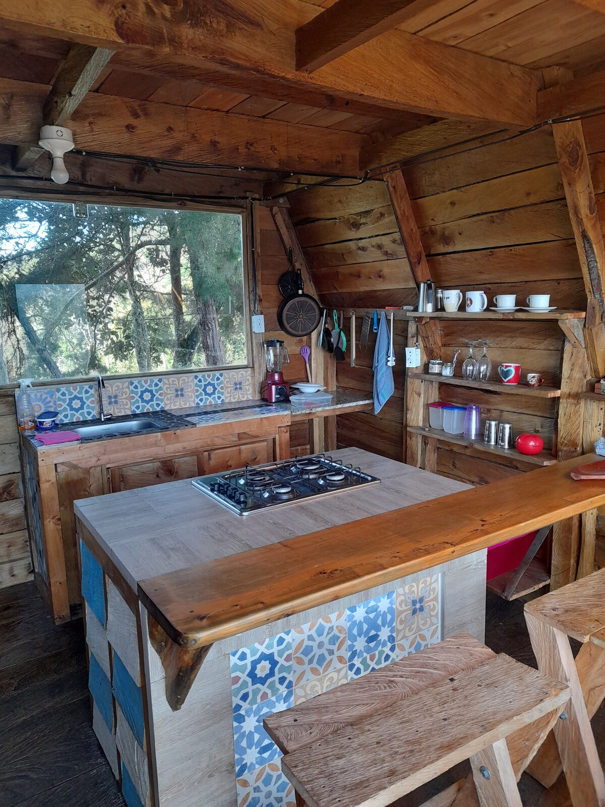 Zamislite da spavate u brvnari u bračnom krevetu uz zvuk rijeke. Kada se probudite, osjećat ćete se u kućici na drvetu s pogledom na pahuljice pune ptica, sići u baštu bosih nogu, doručkovati na terasi i vidjeti horizont. Danju šetate, idete do rijeke i vodopada, dolazite do kamene kade i hidromasažne kade, sjedite u visećoj ležaljci, čitate i noću palite kamin (daždevnjak), popijte vino na kuhinjskom pultu kao par, porodica i prijatelji.