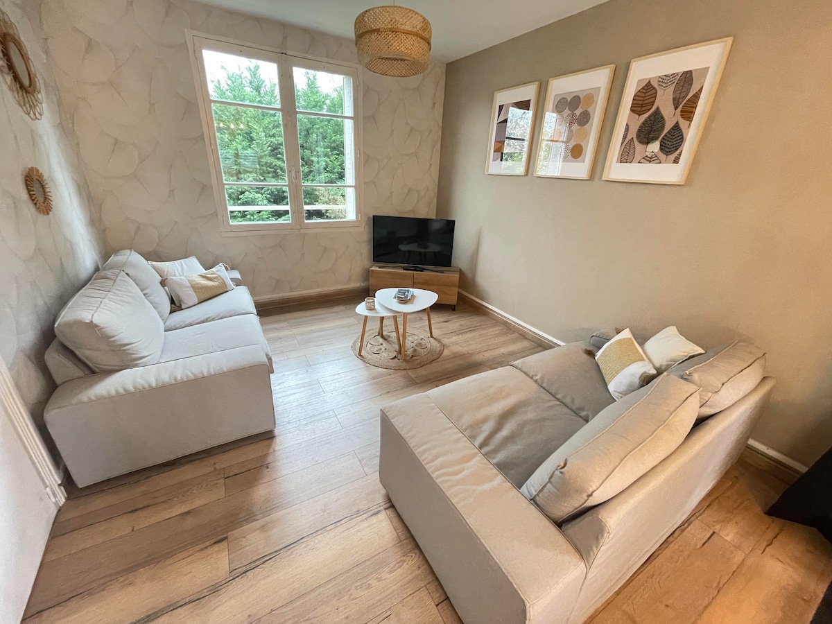 Opustite se u ovom mirnom i elegantnom smeštaju. I dođite u Uzerche! Stan se nalazi u prizemlju Opremljena kuhinja: mikrotalasne rerne, rerna, aparat za kafu, aparat za kafu, Kuvalo za vodu Spavaća soba 1 - 1 bračni krevet (širine 150-179 cm) 200/200 Spavaća soba 2 : 1 bračni krevet 160/200 Dnevni boravak sa TV-om - Sofa 140/190 Mobilna klima Potpuno opremljen za 6 ljudi. Posteljina i peškiri su uključeni.