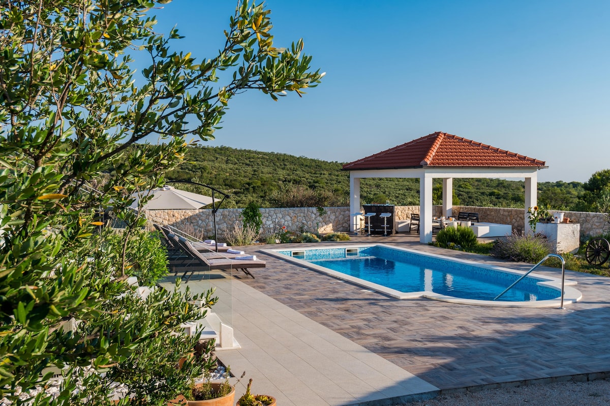 VILA na brežuljku s pogledom na more i grijanim bazenom