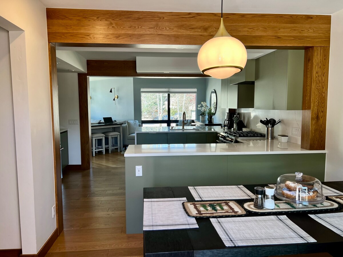 Enjoy the gorgeous views downriver of Gore Creek from the bright main room. This newly renovated modern mountain home has been redone with great care. Cozy up in front of the fireplace, enjoy a game on the 80inch TV or make a home-cooked meal in the fully stocked kitchen! Enjoy a good nights sleep in the new mattress and comfy sheets. Best part, the ptarmigan busstop is a snowballs throw away. 3minutes ride to cascade! New mud room for your skis and boots just added. Vail ID:029206