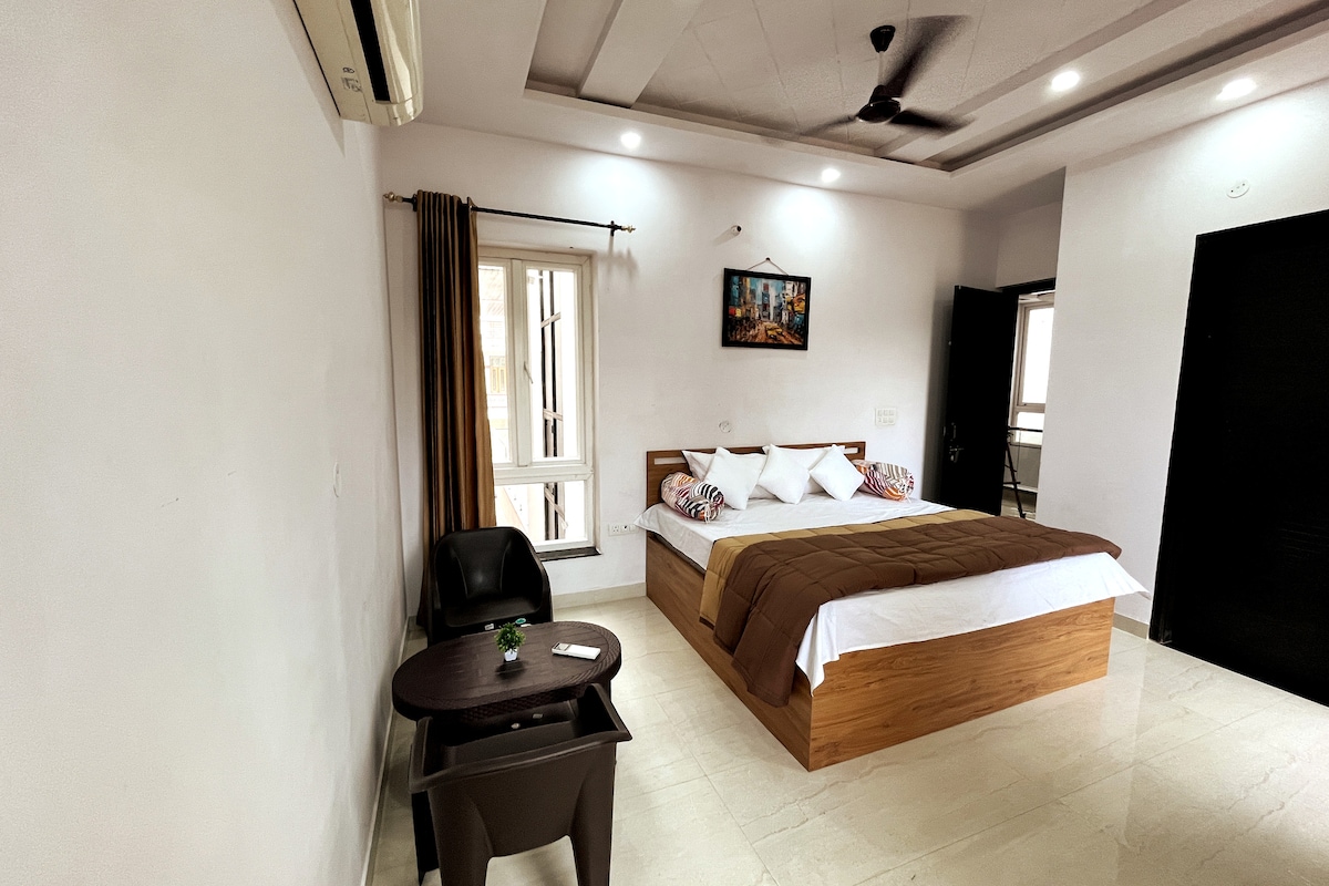 Doživite Džajpur u našem stanu 2BHK koji se nalazi u centru grada, gdje se suptilni radžastanski šarm susreće sa modernom udobnošću. Pažljivo dizajnirana od nule imajući na umu svaki detalj, ova bezbjedna i živopisna četvrt udaljena je svega nekoliko koraka od kuće. Uživajte u svim sadržajima - klima-uređajima, potpuno opremljenoj kuhinji, TV-u i besprekornim higijenskim protokolima; za boravak tako udoban, osjećat ćete se kao kod kuće zauvijek <3 + „Fursat” znači slobodno vrijeme i simbolizuje priliku za opuštanje i opuštanje.