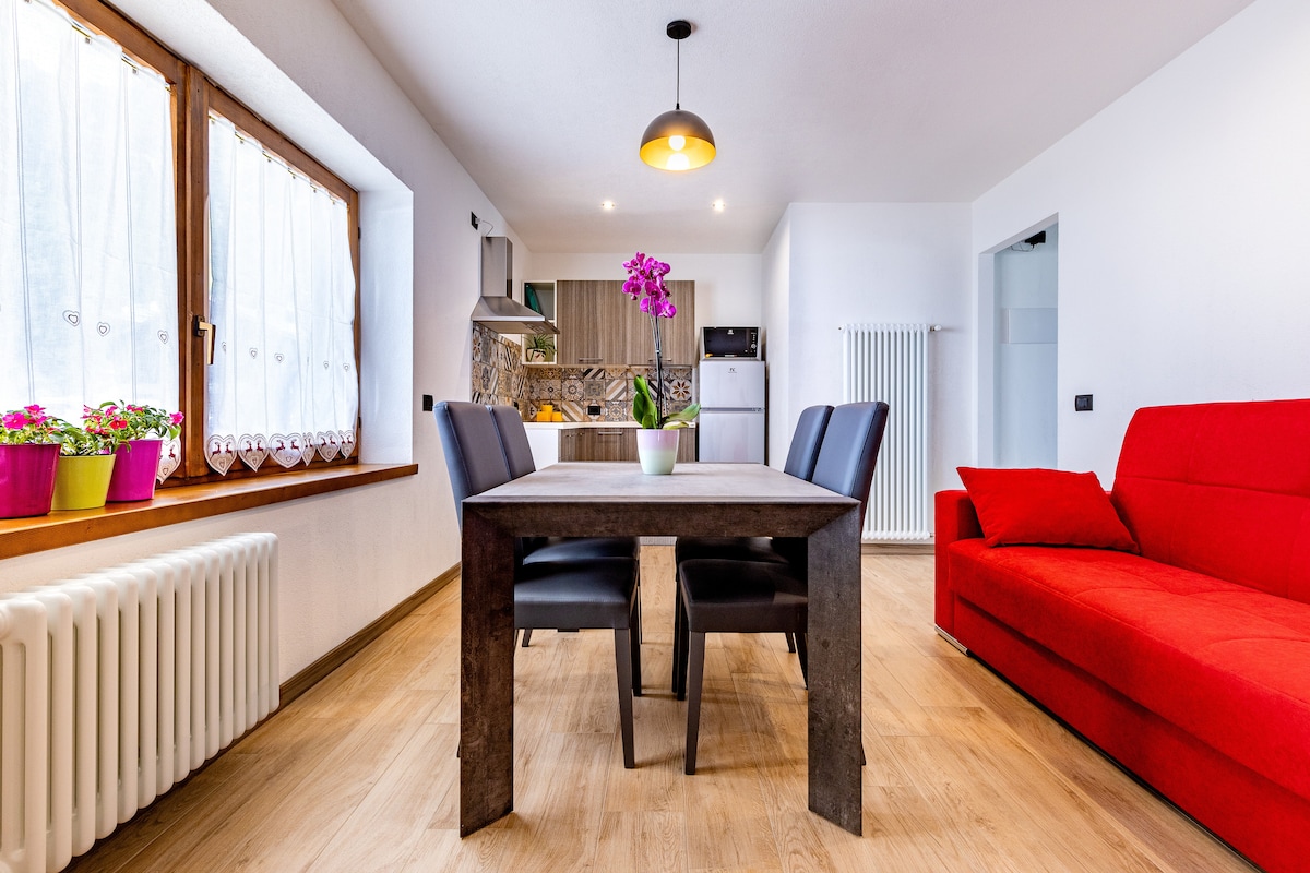 Veliki, nedavno renovirani studio apartman u samom srcu Bormija, u srcu istorijske ulice Via Roma! Potpuno opremljeno prestižnim namještajem od punog drveta! Zahvaljujući ovoj zavidnoj lokaciji, sve vam je nadohvat ruke: kupovina, šetnje, spa centri, skijanje na poznatoj padini Stelvio, umjetnost, kultura i opuštanje... Hvala vam puno na vašoj preferenciji!!! ❤️