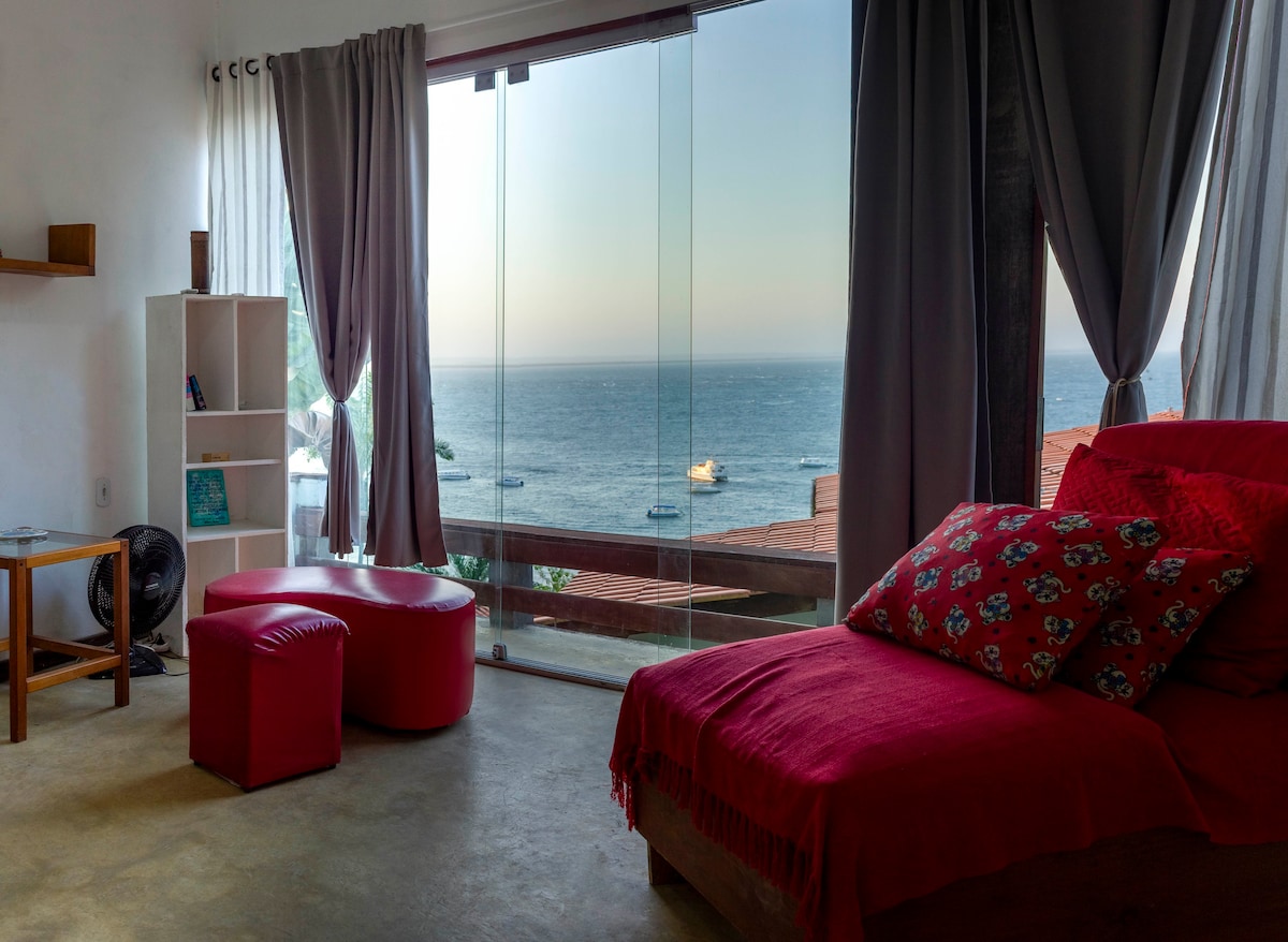 Stanovi od 30 kvadratnih metara sa kupatilom, opremljenom kuhinjom, hidromasažnom kadom i hromoterapijom. Sav ovaj privatni! Nezavisni pristup Nalazi se na 80 metara iznad plaže Porto de Cima, sa sjajnom udobnošću, spokojem i najboljim - sa spektakularnim pogledom na more! Bazen sa beskonačnom ivicom i noćnim osvetljenjem Mirna lokacija, okružena atlantskom šumom, daleko od buke i nezaboravnog zalaska sunca! 15 minuta od centralnog trga u selu i 20 minuta od 2. plaže Najbolji izgled Moroa