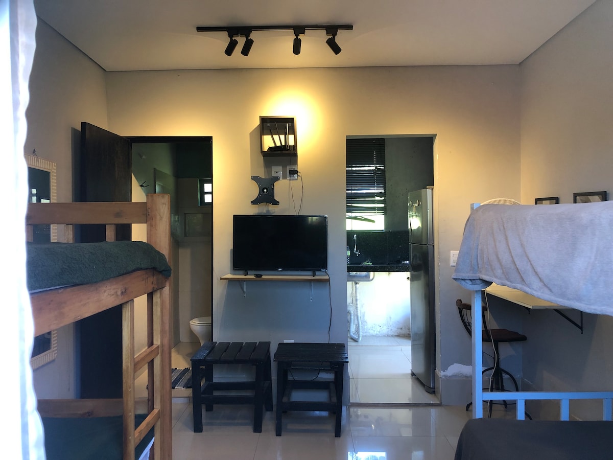 The Guest House is located next to Iguatemi Shopping Mall and the city center, with easy access to the main highways. Perfect for hosting families attending graduations, weddings, corporate events, and trade fairs. • Total of 24 beds • Bed linen and towels available for rent • Fully equipped office suitable for work • Equipped kitchen • Washer and dryer • Free parking • Game room • Entertainment room • Swimming pool • Steam sauna • Wi-Fi • Self check-in • Pets allowed