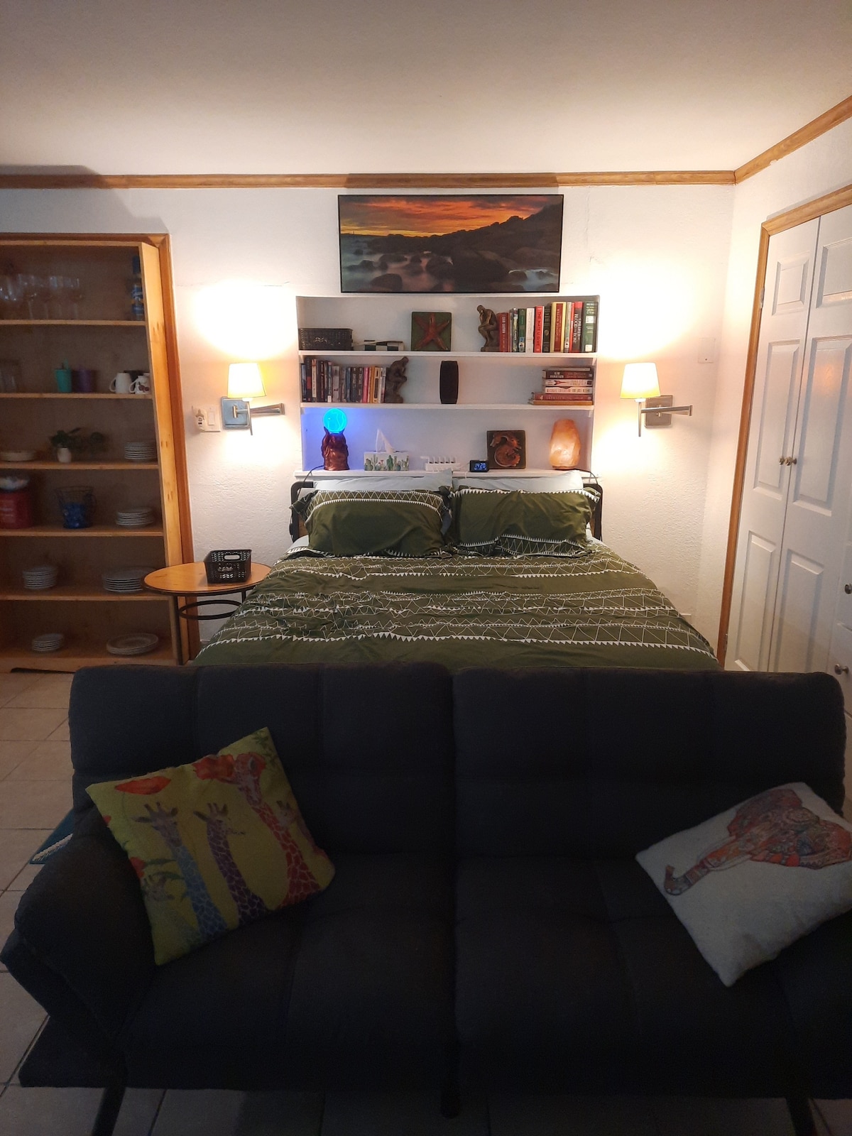 Stići ćete u udoban boravak vezan za našu kuću , koja se nalazi preko puta ulice sa zasebnim ulazom, mini kuhinjom i kupatilom samo za vas i saputnika, a sa mirom u kojem mi domaćini živimo pozadi, ali nećemo imati kontakt sa vama samo ako vam zatrebamo, to je mirno i centralno mesto. Imamo kućnog ljubimca, sijamskog mačića po imenu Botitas koja izlazi napolje , bezopasna je. Udaljeni smo 35 milja od ostrva Padre, 27 milja od Space X .
