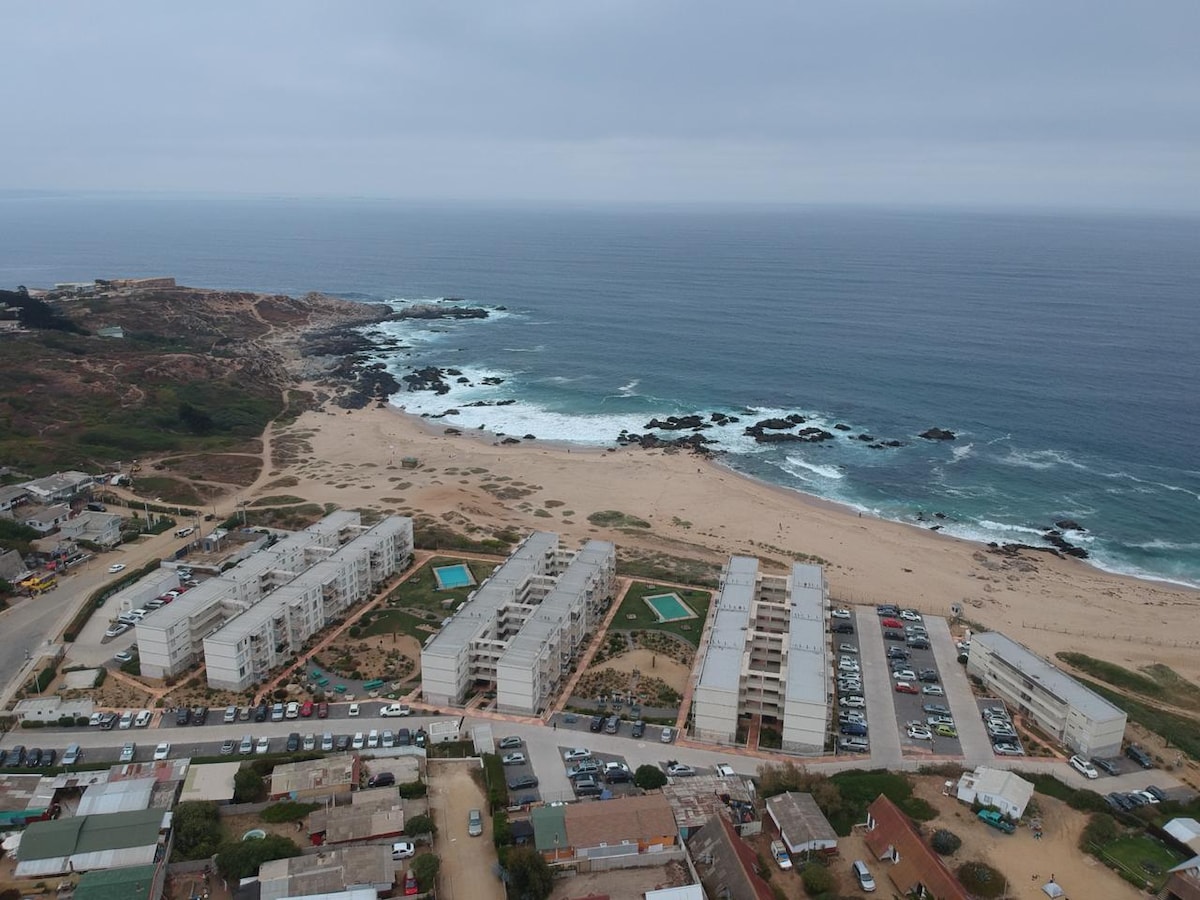 Stan na prvom spratu, koji se nalazi u gradu La Serena, sektor 4 ugla od plaže, sa maksimalnim kapacitetom od 5 osoba. Ovaj ima opremljenu čajnu kuhinju, tri spavaće sobe, jedno kupatilo, kablovsku televiziju, parking i balkon. Kondominijum je kontrolisao ulaz 24 sata dnevno, zelene površine, kvinčo i igralište. Nalazi se u mirnom sektoru sa lakim pristupom interesantnim tačkama kao što su: plaža, sajmovi rukotvorina, pijace, pabovi i restorani.
