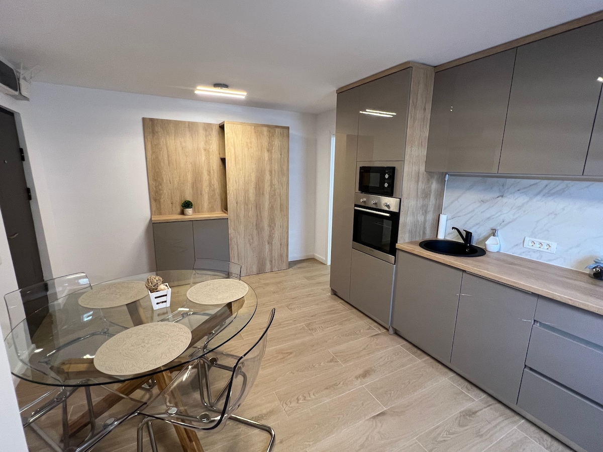 Potpuno novo uređeno mesto sa novim nameštajem i aparatima, koje se nalazi u blizini centra grada (direktna udaljenost oko 500 metara), sa supermarketima u blizini . Garsonjera na prvom spratu (bez lifta) ima prostor za spavanje sa kaučom na razvlačenje za dve osobe. Studio ima potpuno opremljenu kuhinju, frižider, aparat za espreso kafu, mikrotalasnu rernu, plinsku ploču za kuvanje, mašinu za pranje veša, besplatan kablovski, pametni TV , besplatan Wi-Fi. Besplatan privatni i javni parking u blizini zgrade.