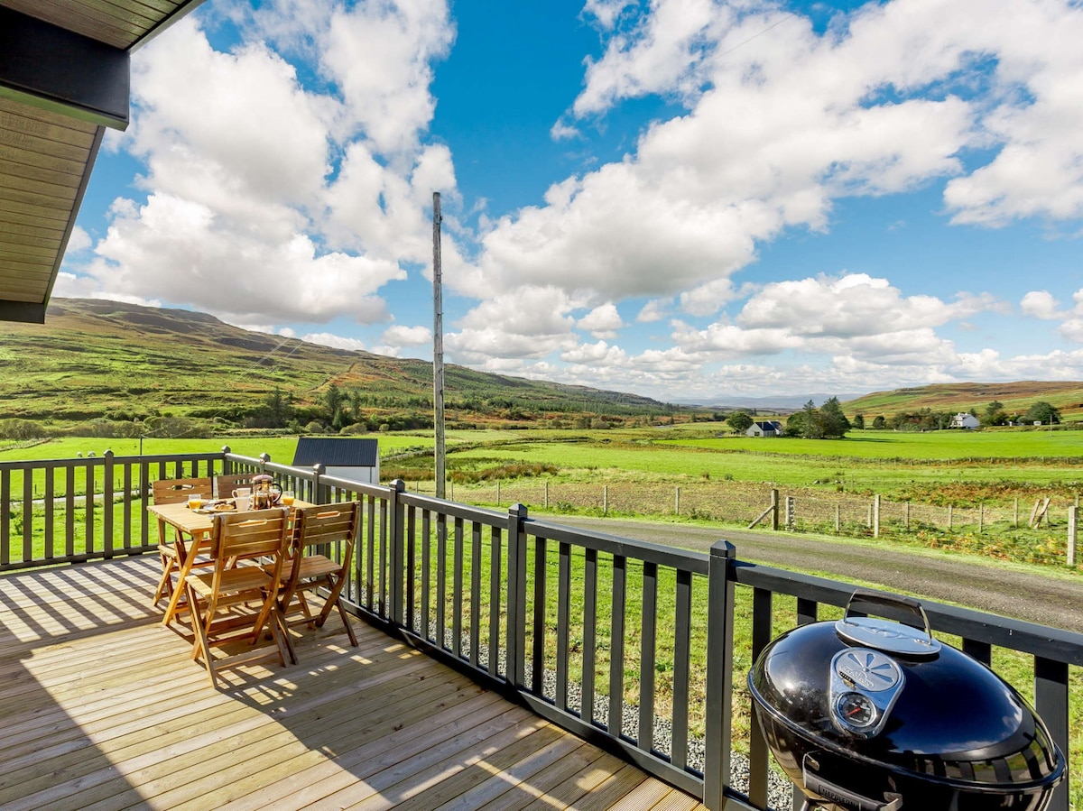 Naš udoban, svetao i prostran moderan smeštaj ima potpuno opremljenu kuhinju sa trpezarijskim stolom, veliki bračni krevet i apartman sa električnim tušem, prostor za sedenje sa zadivljujućim neometanim pogledom na Quiraing sa vratima unutrašnjeg dvorišta koja vode ka terasi. Pogled koji imamo je poseban. Živimo u zaista prelepom i mirnom delu Skaj