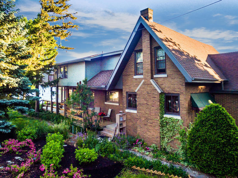 U neobičnoj zgradi na padini sa pogledom na jezero Mičigen, ovaj udoban krevet i doručak nudi zadivljujući pogled na jezero, zajedno sa predivnim zalascima sunca, od sunčane sobe, terasa i prostrane engleske bašte. Manje od milje od plaže Lions Park i kilometar i po od prodavnica i restorana u centru Sent Džozefa. The Sunset Room has a king bed, your own private view of the sunset from the lakeview balcony, gas fireplace, and private bathroom with bath/shower combo.