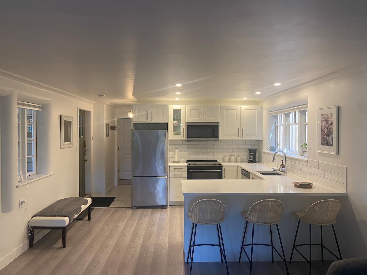 Welcome to your Scandinavian style large one-bedroom, one-bath, plus office retreat, perfect for couples or solo travelers. Enjoy a private entrance with keyless entry, office, wi-fi, and a fully stocked kitchen with coffee, tea, and espresso provided. Relax in your own private courtyard with a covered patio, fire pit, dining table, Weber BBQ, and seating. Ideal for work or relaxation—everything you need for a comfortable stay. Babies/toddlers welcome - highchair, car seat, pack n play, bed.