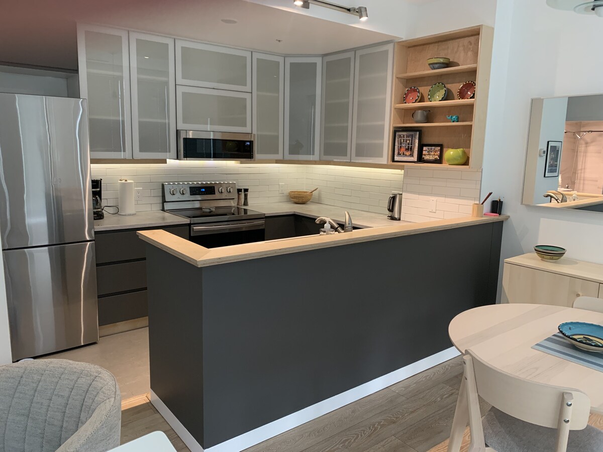 Dobro došli u svoj novi dom, luksuzan i dobro opremljen stan koji se nalazi u srcu Olimpijskog sela u Vankuveru, delu grada koji je namerno izgrađen kao zajednica koja se može prošetati za selo olimpijskih sportista iz 2010. godine. Jedna stanica udaljena od centra grada, dva bloka od čuvenog morskog zida u Vankuveru i okružena neverovatnim restoranima, barovima i pivarama. Takođe ste u neposrednoj blizini naučnog sveta i mnogih drugih atrakcija, uključujući šest minuta vožnje do prelepog ostrva Grenvil.