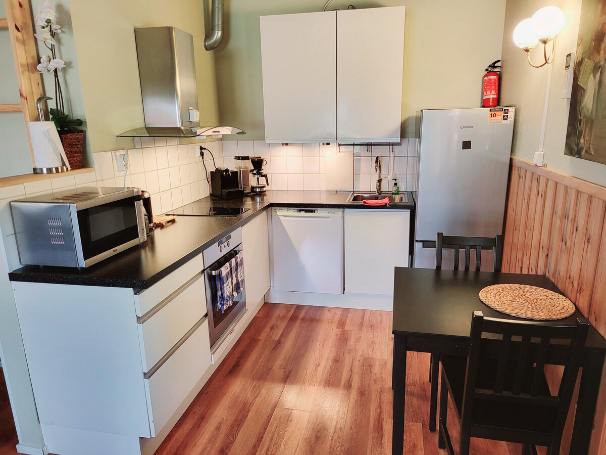 Nema buke nakon 23:00! Romantičan i praktičan studio apartman sa potpuno opremljenom kuhinjom u bezbjednom kraju. 2 minuta hoda do željezničke stanice Oulunkylä. Vozom sa aerodroma možete doći do naših vrata. Kongresni centar Messukeskus/ Hartwall Arena udaljen je samo 2 stanice. Laka željeznička linija East West Raide-Jokeri udaljena je 4 minuta hoda. Klima-uređaj. Besplatan parking u našem bezbednom privatnom dvorištu. Ulaz bez ključa - kasni dolasci su dobrodošli! Uživajte u gledanju besplatnog Netflix-a! Đakuzi je otvoren od 15. jula do 1. avgusta. Pušenje je dozvoljeno na balkonu