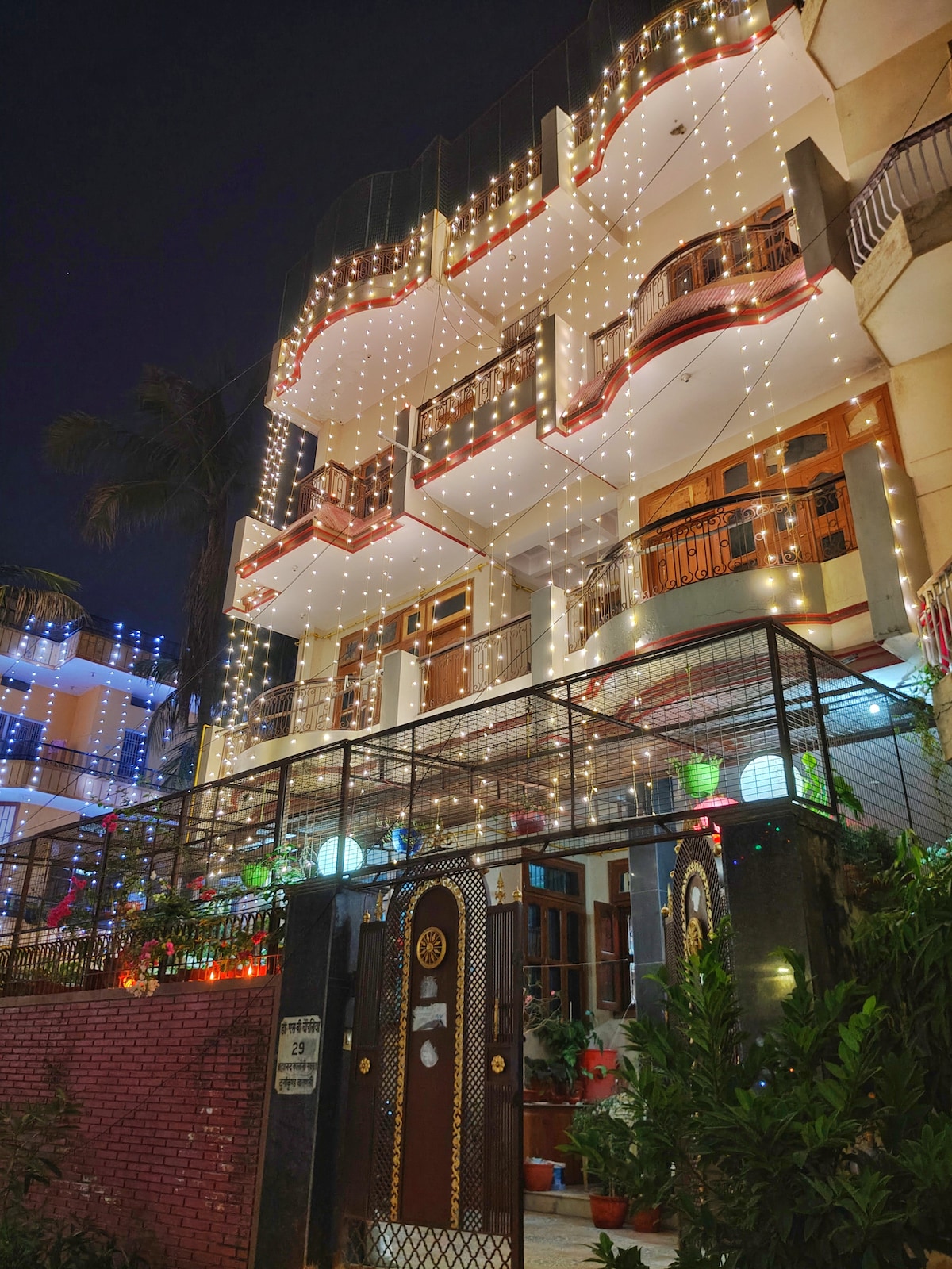 Ovaj penthaus s 5 zvjezdica u centru Varanasija je jedinstveno planirana jedinica. Ovaj vrhunski smještaj na 2. spratu od 2000 kvadratnih stopa dolazi sa ogromnom terasom i baštom sa osjećajem „Boljeg doma daleko od doma”. U njemu može da spava 6 odraslih i dodatna djeca, a ima i potpuno opremljene sadržaje sa karaokama. Imamo parking i sve što vam treba je blizu. Svako turističko mjesto je na kratkoj udaljenosti i svega nekoliko minuta udaljenosti. Na taj način podržavamo susjednu zajedničku školu za djecu kojima je potrebna pomoć u našem području.