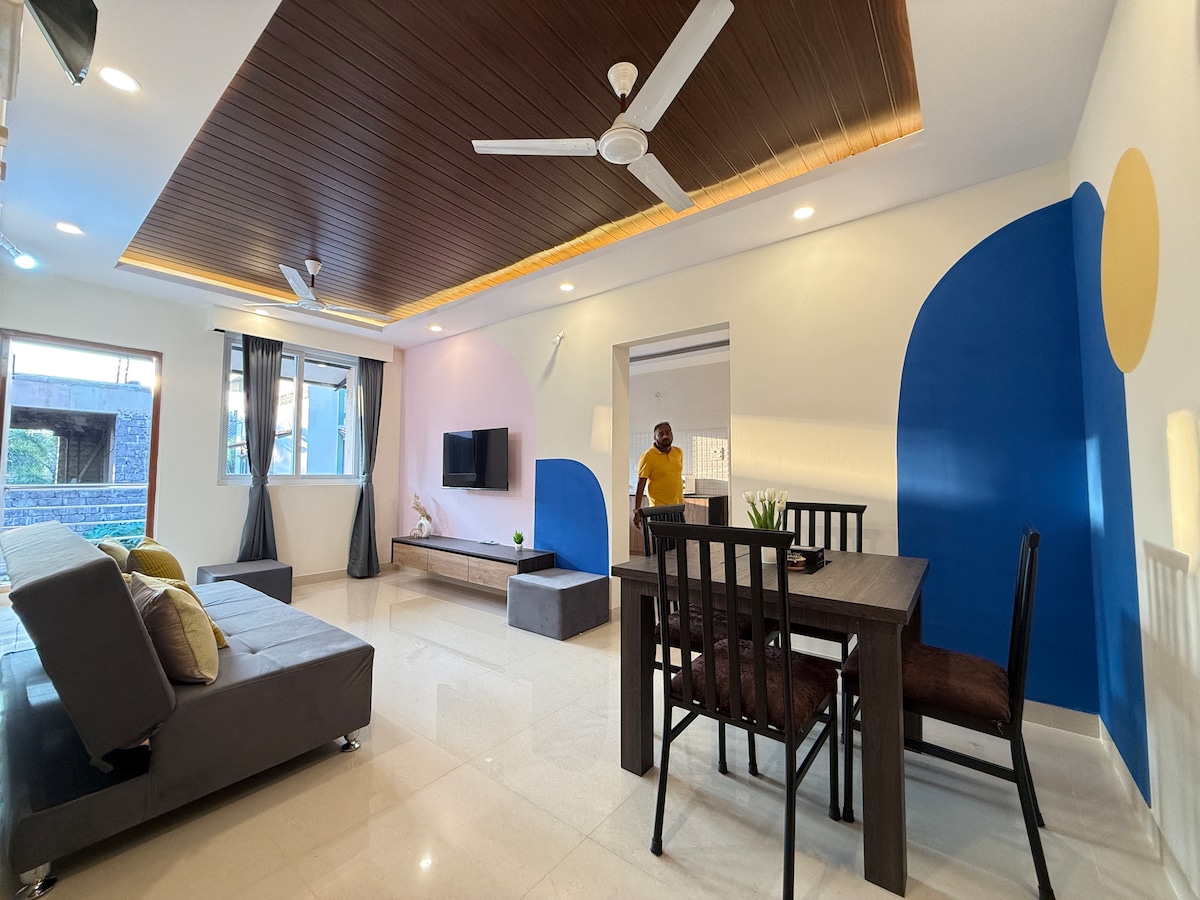 Tražite kvalitetno vrijeme, mir ili povezanost? Naš smještaj je namijenjen porodicama, parovima i putnicima koji putuju sami, pažljivo osmišljenim dizajnom i lokalnim šarmom. Pobjegnite od haosa i opustite se u našem mirnom 2 BHK boemskom odmaralištu, samo nekoliko trenutaka od plaže Varka. Ovaj prelijepo uređeni stan spaja udobnost doma sa šarmom odmarališta savršenim za miran odmor ili inspirativan boravak. 5 minuta vožnje do plaže. Potpuno namješten sa udobnim, živopisnim dekorom Namjenski radni prostor i brzi Wi-Fi .