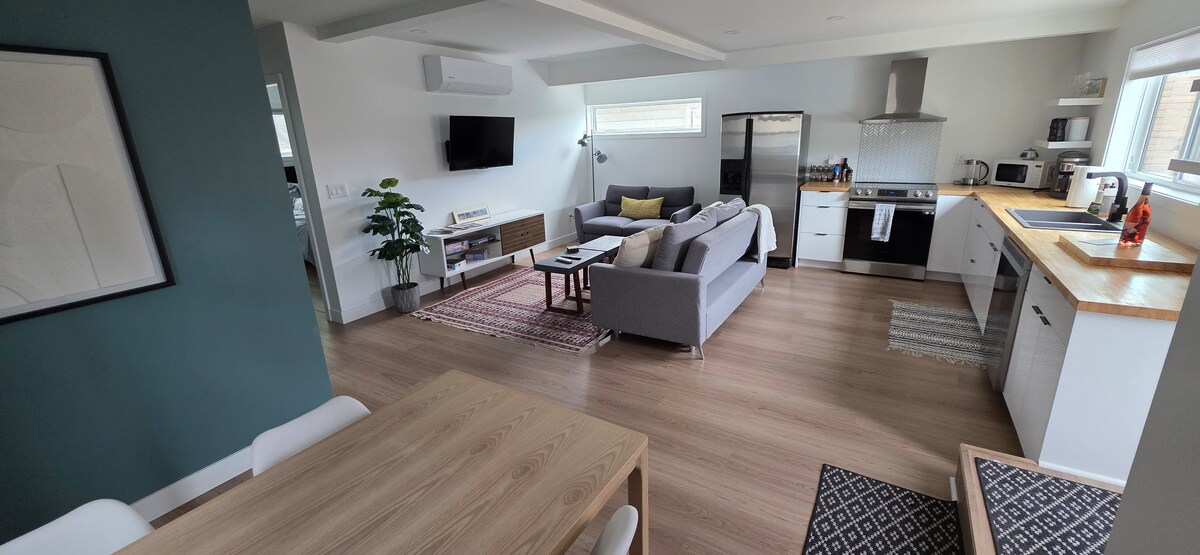 Minimalistički, pažljiv dizajn za maksimalni mir i udobnost. Novo i svrha izgrađen za ugošćavanje, vaš čist apartman se nalazi na prelijepoj stazi Test of Humanity. Uživajte u šetnji, biciklizmu ili spektakularnom pogledu direktno iz apartmana ili na natkrivenom balkonu. Domaćini žive u tom području već decenijama i mogu da vas vode do širokog spektra obližnjih atrakcija, aktivnosti i užitaka koje ovo područje nudi. Nalazi se na nekoliko minuta od centra grada, ali izgleda i izgleda kao utočište u prirodi!