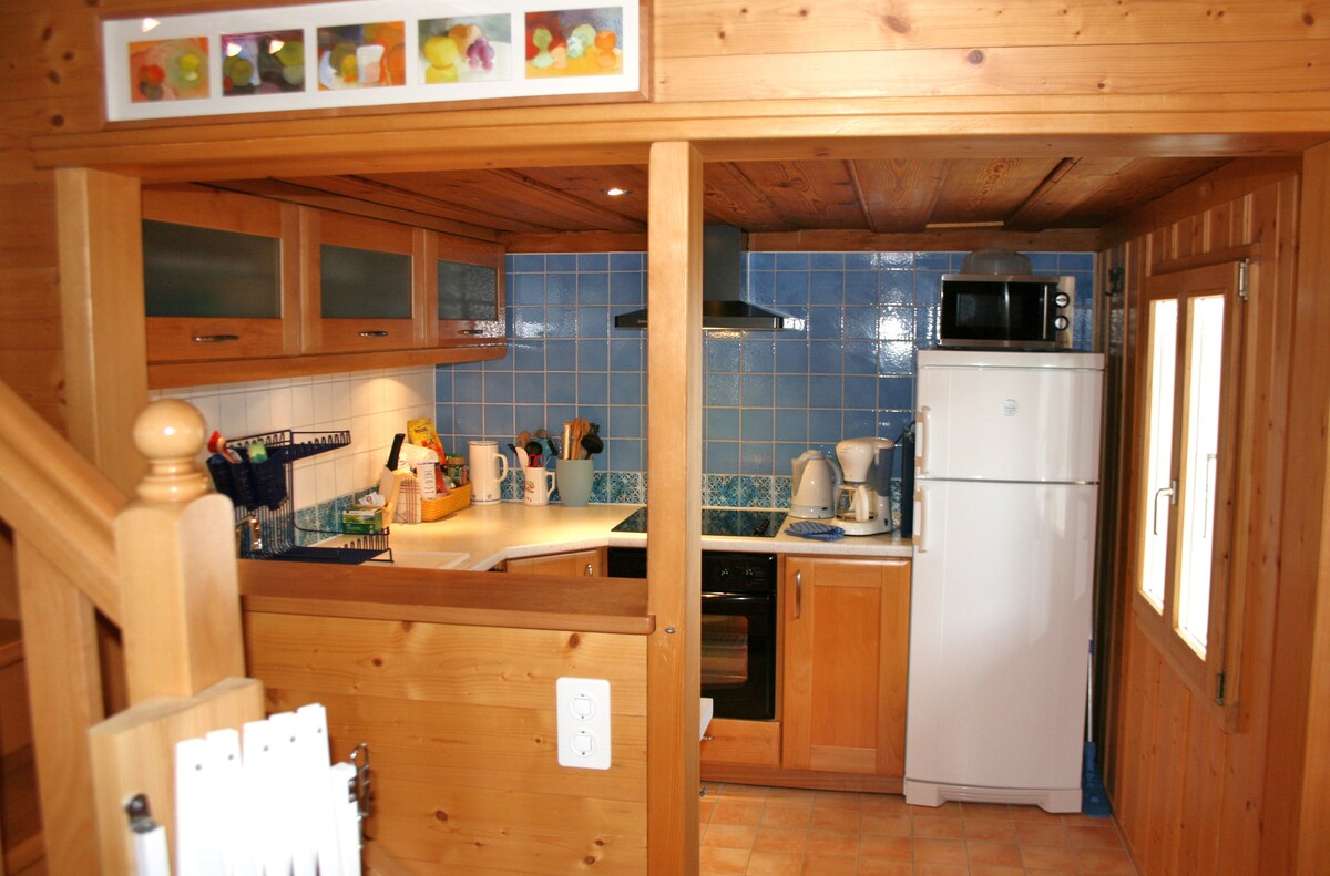 Facing south with stunning views of the Alps, La Petite Grange is a former stable that has been completely renovated. Boasting superb views, this detached house is fully equipped. The upper level features a wood-burning stove, a kitchen, and a living/dining area that opens onto a balcony. The lower level includes a bedroom with four beds and a bathroom. Two parking spaces are available. The peaceful setting of La Petite Grange ensures a high-quality stay for its guests.