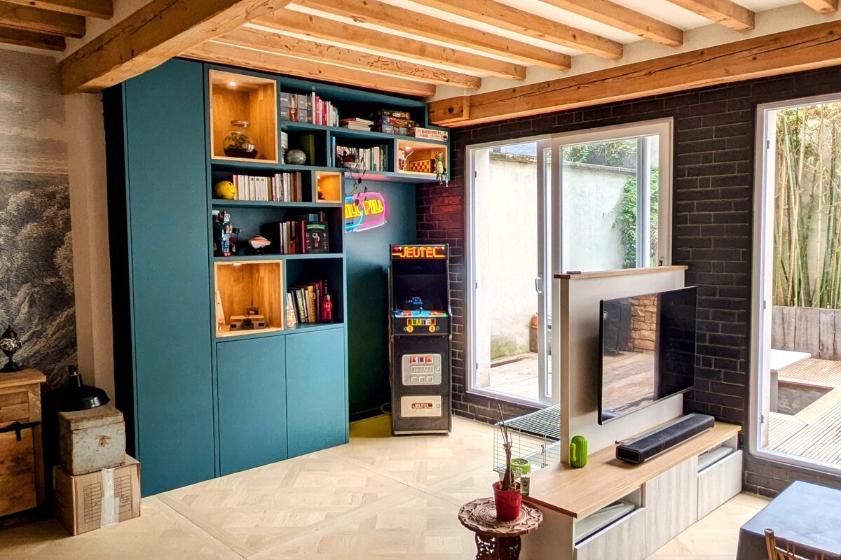 Dobro došli u naš dom! Pozivamo vas da odsjednete u našoj lijepoj kući u nizu sa terasom i malom baštom koju smo renovirali i uredili u skladu sa našim nalazima. Ovaj atipični smještaj se nalazi u blizini ušća rijeka Rone i Saone i poslovnog okruga Gerland. Javni prevoz do Lion Presqu'île-a za 10 minuta. Nepokriveno parking mjesto u dvorištu koje vam je na raspolaganju. Neposredna blizina autoputa A7.