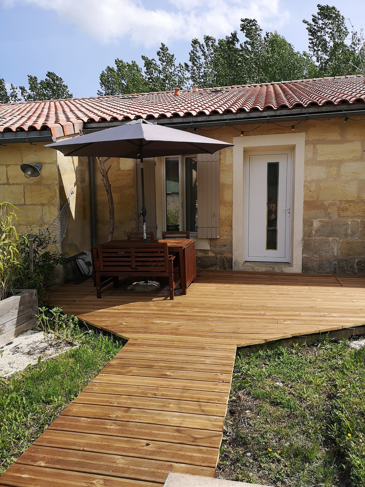 Renovirana kuća smještena u srcu vinograda Bordoa, 35 minuta od Bordoa (20 minuta vozom), 15 minuta od Liburna, 20 minuta od Sen-Emiliona i oko 1 sat i 20 minuta od plaža (Din du Pilat, Arkašon). Za 4 osobe, dnevni boravak sa opremljenom kuhinjom, spavaća soba sa bračnim krevetom i radni sto. Kupatilo pored spavaće sobe. Zaseban toalet. Kuća ima veliku nameštenu terasu sa plančom i ležaljkama na kojoj možete da uživate u prelepim večerima. Železnička stanica je udaljena 15 minuta.