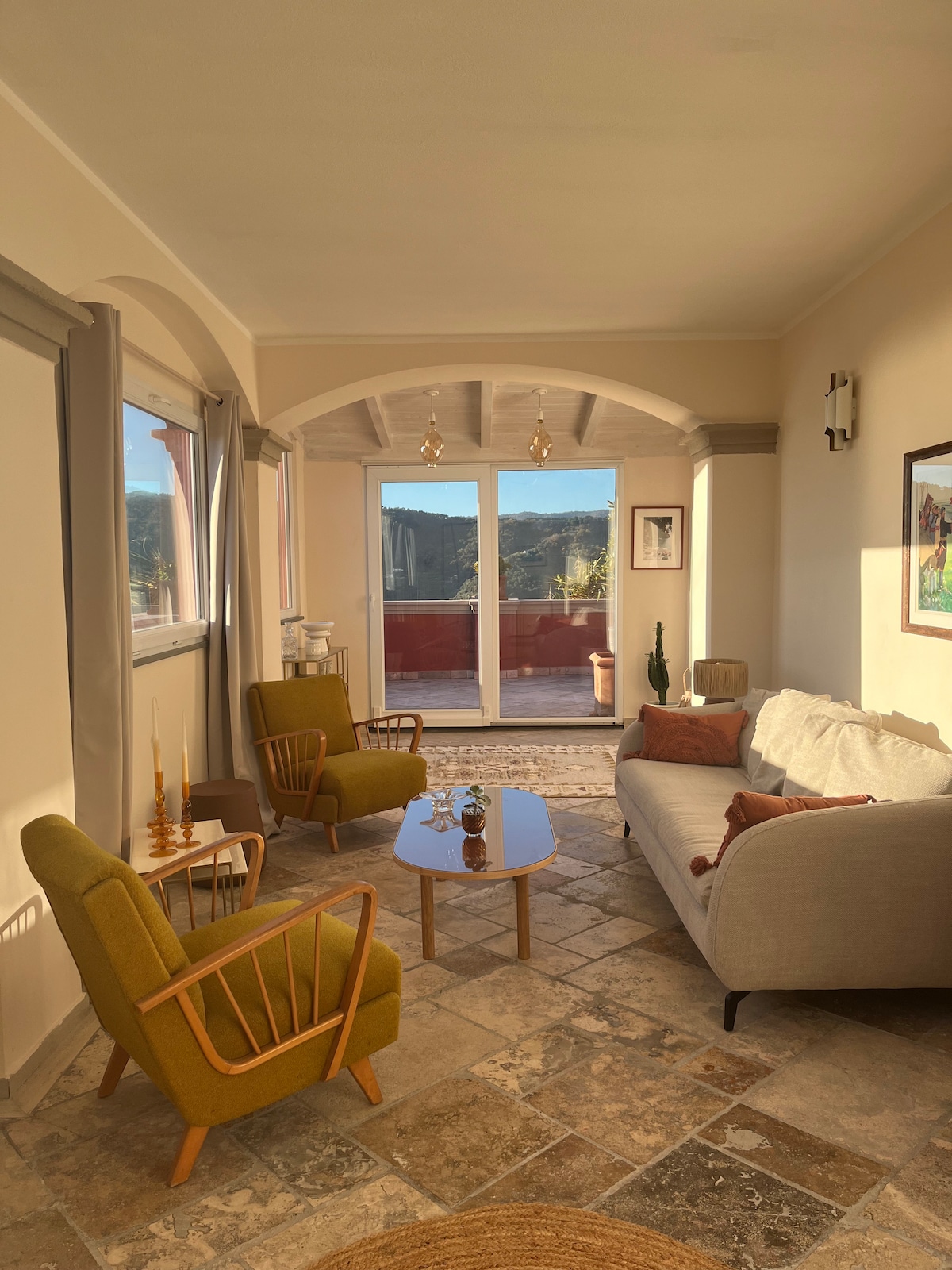 Odmaknite se od grada, na visini Alassia i 4 minuta automobilom od plaže, prodavnica i restorana, dođite i provedite nezaboravan boravak u našem potpuno renoviranom i pažljivo uređenom stanu. Uživajte u miru okolnog sela, izuzetnom pogledu na zaliv sa terase i svim udobnostima ovog jarko okupanog stana smještenog u starom manastiru iz 17. vijeka.