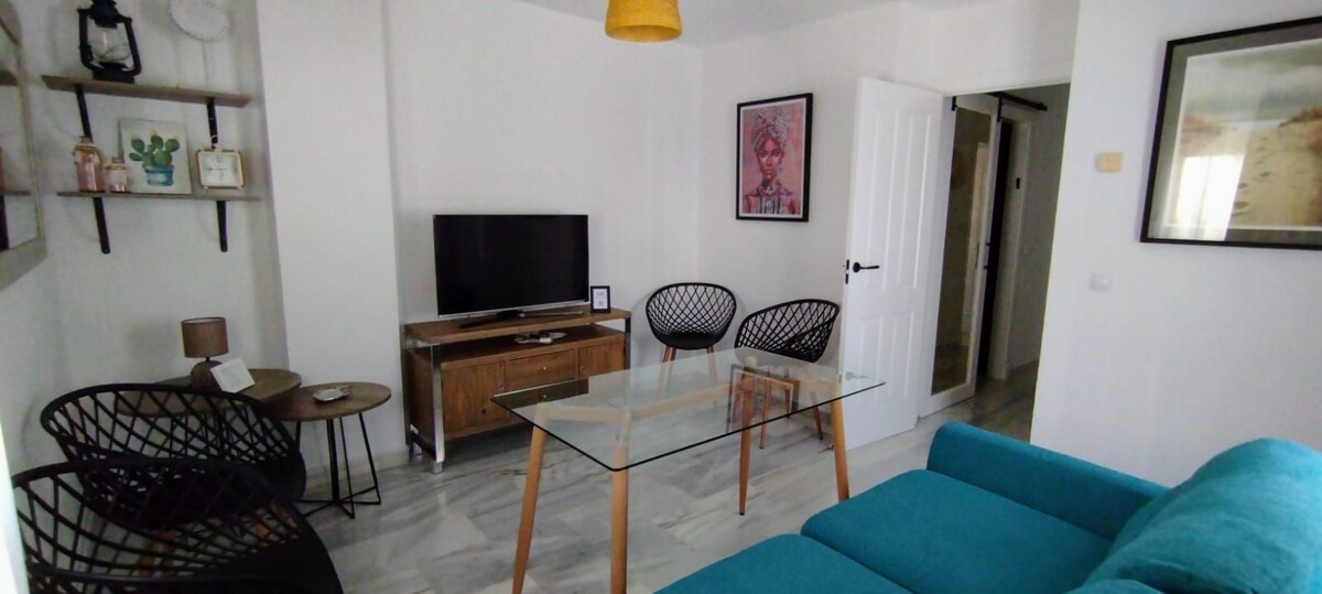 Ako tražite svijetao, prijatan, potpuno renoviran stan, namješten s pažnjom, udoban, sa pogledom i prekrasnim zalascima sunca. Sa velikim besplatnim parkingom i autobuskom stanicom u neposrednoj blizini, blizu najvećeg tržnog centra u pokrajini i savršeno povezanim autoputevima koji nas vode do aerodroma, brzine, Sevilje i cele obale sa svojim poznatim plažama... ovo je vaš apartman! Doručak za dobrodošlicu!! !! U JULU I AVGUSTU, MINIMALNI BROJ NOĆENJA JE 4 !!