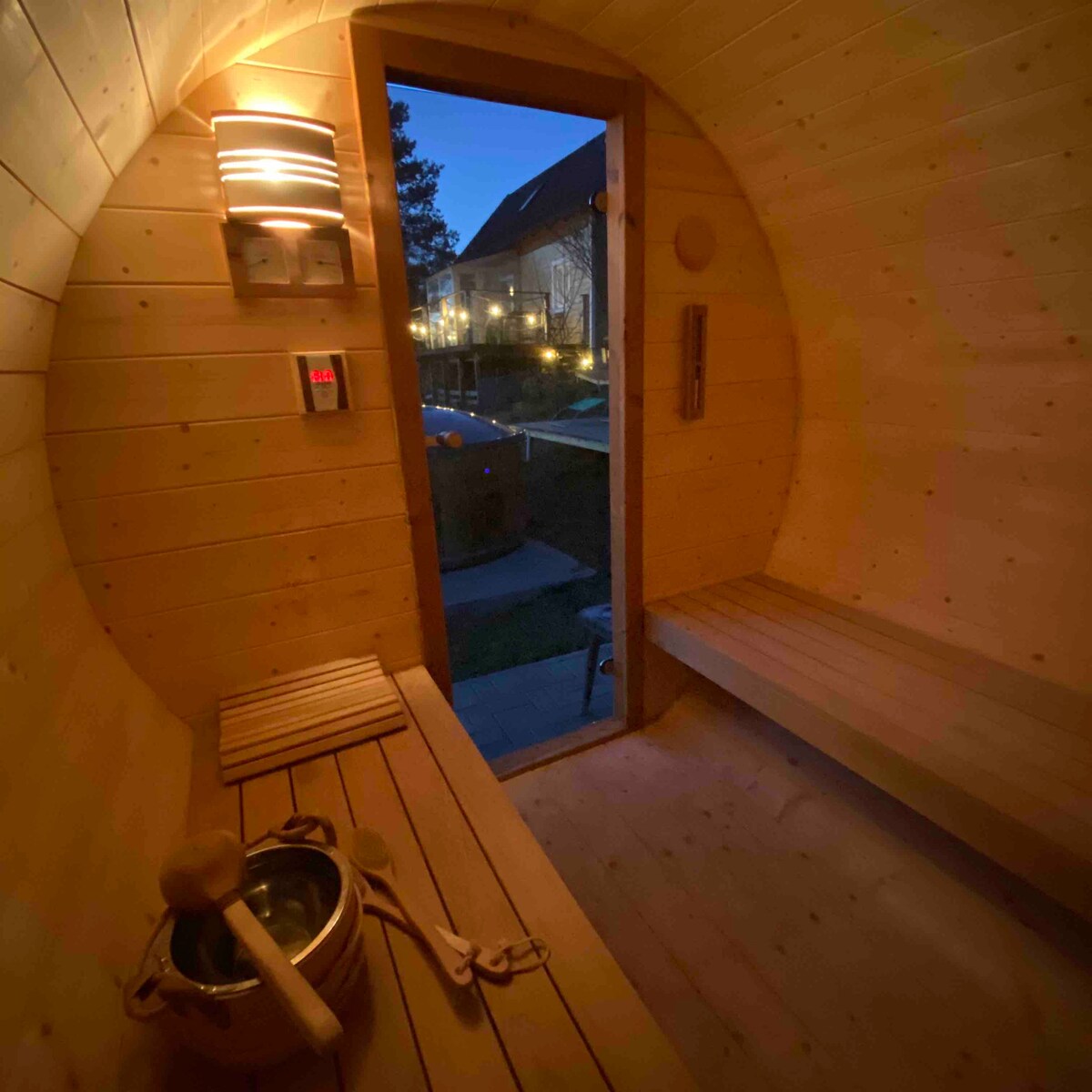 Romantična kuća sa lijepim pogledom. Pogodno za dvije osobe, ali tri odrasle osobe mogu udobno da spavaju, ili dvije odrasle osobe i jedno starije dijete, ili dvoje mlađe djece. (gornji dušek je širok 120 cm, donji 160 cm). Gosti takođe mogu da koriste društveni prostor u potkrovlju, gdje su dostupni stoni fudbal, skakanje u seno i streličarstvo. Na raspolaganju je i sauna koja se dodatno plaća (12,50 EUR) i stara teretana sa bokserskom vrećom – besplatno.