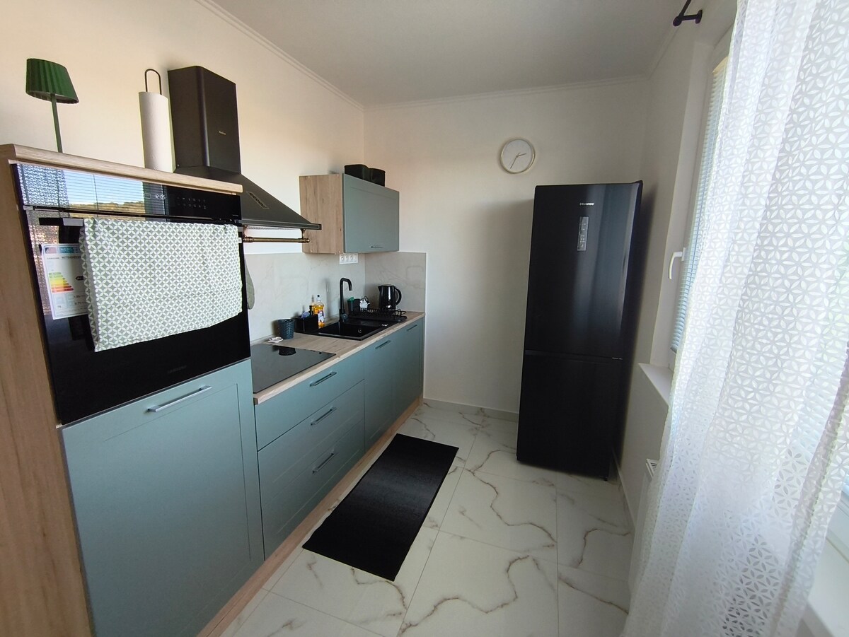 Dobro došli u naš prostrani, osunčani novoizgrađeni/ namješteni stan u blizini „Rute 66“ u Krupini sa klima-uređajem, kompletnom opremom i kuhinjom otvorenog tipa, mašinom za pranje sudova, mašinom za pranje veša i ostavom sa frižiderom i zamrzivačem, prostranom dnevnom sobom sa TV-om, trpezarijskim stolom, velikim kaučem na razvlačenje, kaučem na razvlačenje, prostranom kupatilom sa mašinom za sušenje veša. ................................................................ Dobro došli u naš prostrani, osunčani novoizgrađeni i namješteni stan na Route 66 u Krupineu