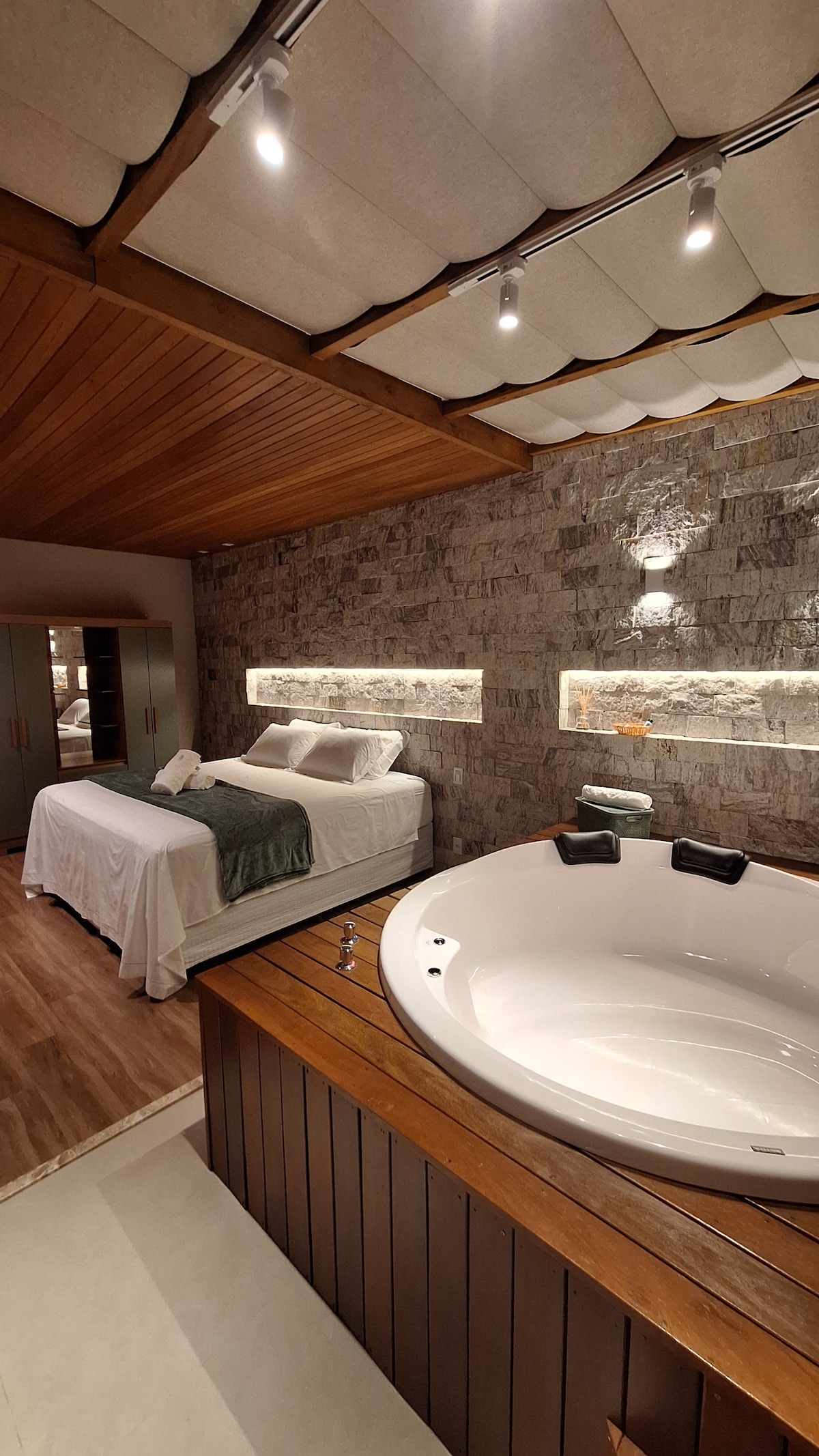 Mátria je utočište namijenjeno parovima koji traže čulni i sofisticirani doživljaj u prirodi. Koliba kombinuje autorsku arhitekturu, kamin, bračni krevet s vrhunskom posteljinom, kadu s pogledom na šumu i viseću terasu usred drveća. Svaki detalj je osmišljen kako bi se stvorilo jedinstveno, intimno i nezaboravno iskustvo. Nalazi se u Pedra Azulu, nekoliko minuta od državnog parka. @matriapedraazul