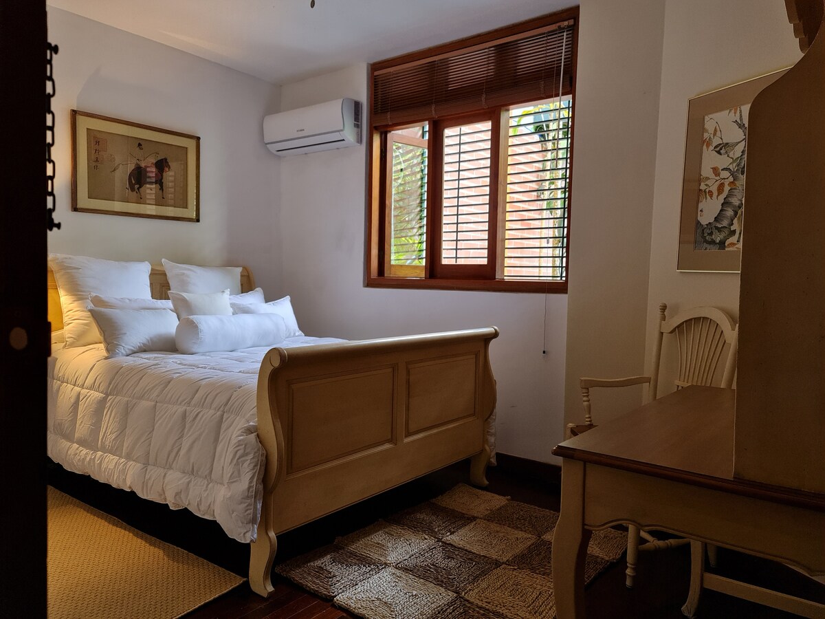 Prekrasan preuređeni aneks s ulazom i odvojenim parkingom. Nalazi se u veoma mirnoj rezidencijalnoj ulici, u blizini ambasada. Dobro opremljena kuhinja sa trpezarijom, dnevni boravak + Smart TV, 2 kupatila, glavna spavaća soba sa bračnim krevetom i spavaća soba sa krevetom za jednu osobu i radnim stolom. Odličan znak za Wi-Fi i rezervoar za vodu isključivo za goste. Nalazi se 1 blok od tržnog centra Paseo Las Mercedes, hotela, restorana, supermarketa i banaka. Jednostavan pristup javnom prevozu i taksiju.