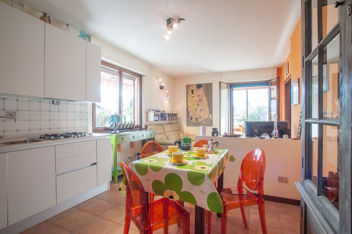 Zdravo, dozvolite nam da se predstavimo: Mi smo Ticijana, Bruno i Dama, naše štene zlatnog retrivera. Casa nonna Franca je nezavisni stan od oko 90 kvadratnih metara koji se nalazi u prizemlju dvojne kuće sa baštom samo nekoliko koraka od jezera, u istorijskom centru Sune. GRADSKA TAKSA 1,00 EUR PO NOĆENJU PO OSOBI SE NE PRIMENJUJE NA MALOLJETNIKE MLAĐE OD ŠEST GODINA. Prenosni klima-uređaj Pinguino DeLonghi dostupan je na zahtjev i dodatno se naplaćuje 5 € dnevno.