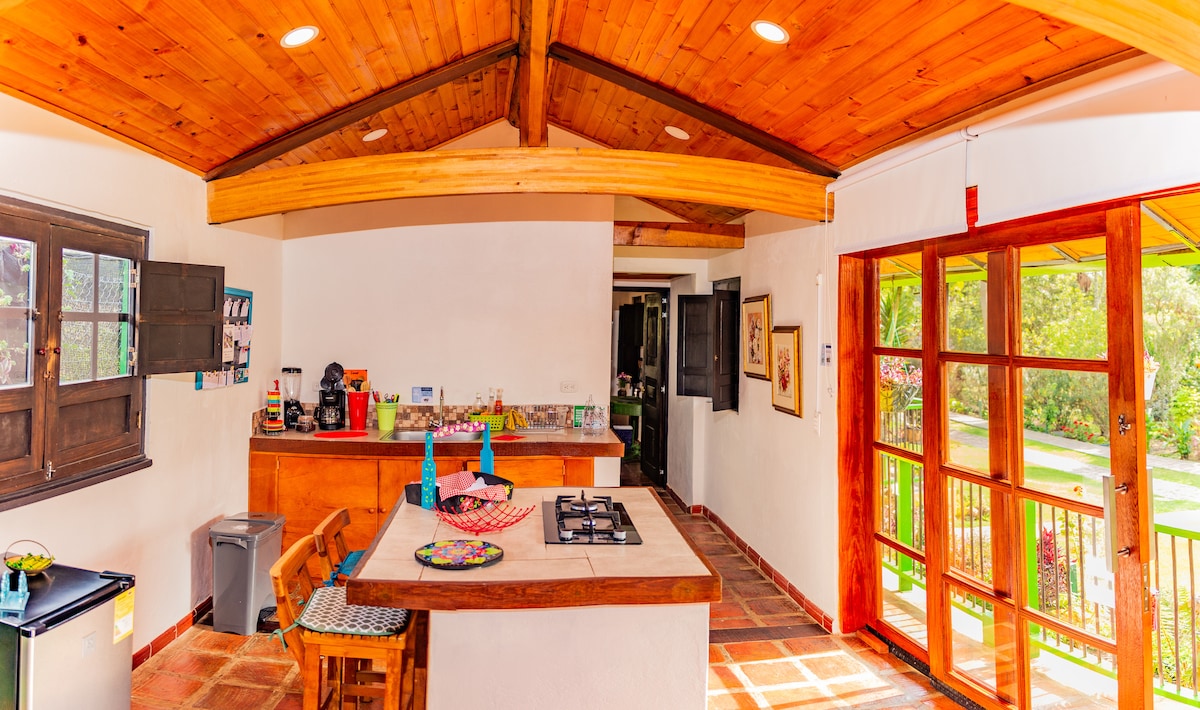 Dobro došli u Cabaña Monti Chiari – vaš savršen bijeg u prirodu u Vereda El Estanco, Tenjo. 🔥 Uživajte u mirnom boravku okruženi zelenim pejzažima idealnim za parove, prijatelje ili one koji putuju sa svojim kućnim ljubimcima🐶. Opustite se uz spektakularan pogled, prošetajte stazama imanja ili se probudite inspirisani ispijanjem kafe i slikanjem na platnu ako želite 🎨🌿. 🌳 Intiman i prirodan prostor, idealan za isključivanje iz svakodnevice ☕ Opremljena kuhinja 🚲 Pješačenje i biciklizam na putu Subačoke