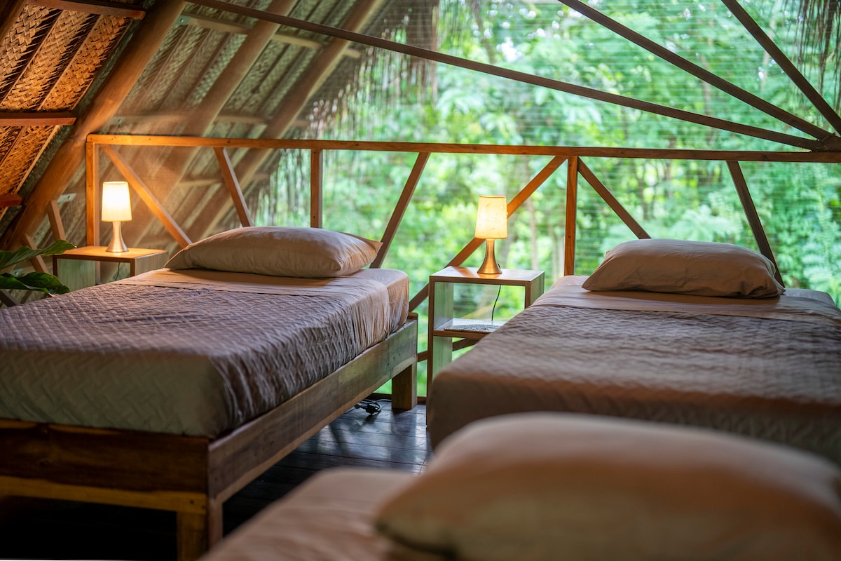 Naš smještaj je ekološki prihvatljiv, udoban, privatan i vrlo udoban. Smješten u prirodnom raju na okeanu i okružen tropskom prašumom. Ako ste ljubitelj prirode, na pravom ste mjestu... plaža, ptice, majmuni, bujni pogledi i meditacija u privatnosti i miru, idealna za opuštanje. Opremljeni smo solarnim panelima koji garantuju neprekidno, neprekidno napajanje električnom energijom za bezbrižan boravak. Wi-Fi je takođe dostupan u svakom trenutku.