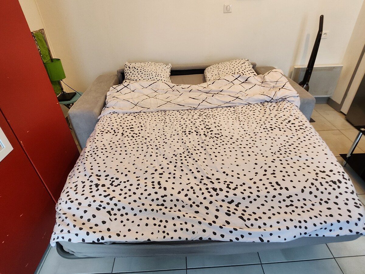 Novi, udobni, moderni i potpuno opremljeni smeštaj sa 3 zvezdice, uz našu kuću od 35 m2. U prizemlju ćete naći spavaću sobu (160 × 200) pored kupatila i drugu spavaću sobu u mezaninu (140 × 190). Na idealnoj lokaciji, bićete na 1 km od tržnog centra i željezničke stanice i na 1,5 km od termalnih kupališta i brzog pristupa. Besplatan parking na ulici Kasna prijava je moguća uz samostalnu kutiju i ličnu šifru. Kasna odjava je moguća na zahtjev, u zavisnosti od kalendara.