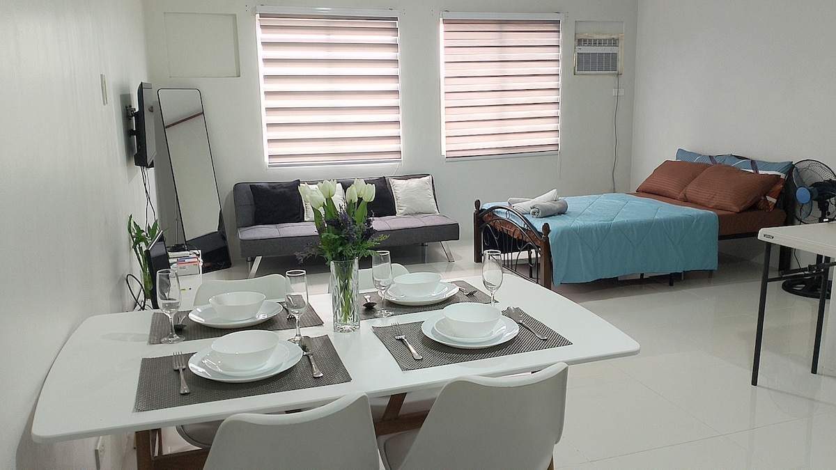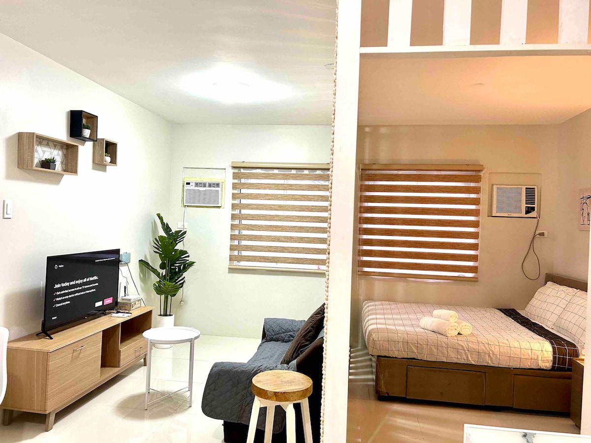 Uživajte u boravku u ovoj udobnoj i elegantnoj garsonjeri u odmaralištu Mesavirre Garden Residences, koja se nalazi u srcu grada Bacolod. Jedinica je opremljena sledećim koje možete u potpunosti da iskoristite! - 50-inčni pametni TV sa Netflix-om i HBO GO-om - Wi-Fi (neograničen) @300mbps - klima-uređaj - frižider - šporet za pirinač - električni čajnik - električni šporet - grijalica za tuš - bide - kuhinjski pribor i pribor za jelo - gvožđe - fen za kosu - papuče - pribor za dobrodošlicu - prodavnica iskrenosti - igre sa kartama i društvenim igrama
