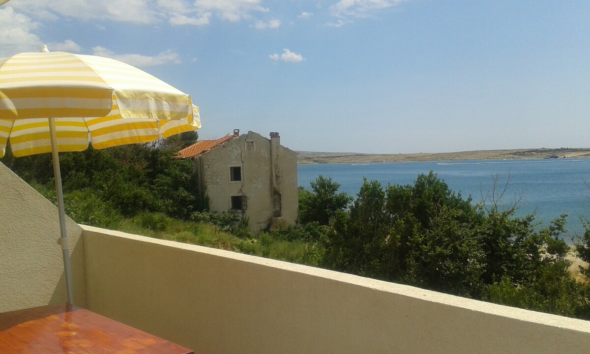 Smeštena na strmim stenama, na 30 m nadmorske visine, ova idilična garsonjera je savršeno mesto za odmor koji vam je veoma potreban. Okružen vegetacijskim rezervatom Dabrava-Hanzine, nudi luksuzan doživljaj - spektakularan pogled na zaliv Pag i planinski lanac Velebit, za jednu osobu. Plaža Rozin Bok udaljena 50 m od stana. Uključen je parking, klima, spoljni roštilj i spoljašnji solarni tuš. SUP i kajak su dostupni tokom boravka u stanu.