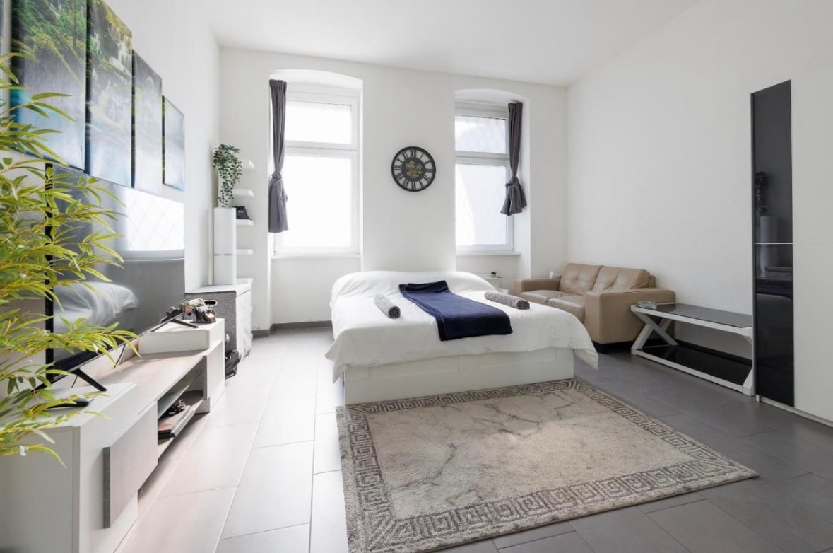 Dva studio apartmana / garsonjere, svaki sa oko 30 m2, nalaze se u blizini centra u drugoj četvrti u usponu, sa pogledom na krovove Beča. Kuća ima lift koji vas udobno vodi na gornji sprat. Odatle do vašeg stana ima svega nekoliko koraka. U stanu je veoma svetlo i sunčano i imate sve što vam treba za prijatan boravak. oprema: - Dnevna spavaća soba - privatno kupatilo sa tušem i WC-om, -mala, potpuno opremljena kuhinja, -W-Lan Da biste uživali u odmoru, možete da kupujete iza ugla, odete na obližnju pijacu Karmelite ili da koristite podzemnu (U2) ili tramvaj (2) da biste otišli u muzejski okrug ili Švedenplatz. Peške je potrebno oko 10 minuta do centra grada. Mnoga različita lokalna i okupljanja u okolini pružaju vam zabavu i pružaju vam priliku da doručkujete , jeftin ručak i ukusnu bečku/internetsku večeru. Oporavljanje se može naći u Augartenu ili Green Prateru - oba su u neposrednoj blizini. Do bečke izložbene dvorane postoje dve stanice na U2, pa su idealne za posetioce sajma ili izlagače. U cenu je uključena posteljina, peškiri, stolna posteljina, struja i gas. Naknada za čišćenje iznosi 30,00 EUR. Naknada za čišćenje za boravke od mesec dana ili više od 50,00 EUR. Mašina za pranje veša je dostupna. Studio apartmani / studio apartmani su takođe mesečni zakup. Minimalna rezervacija za tri noćenja.