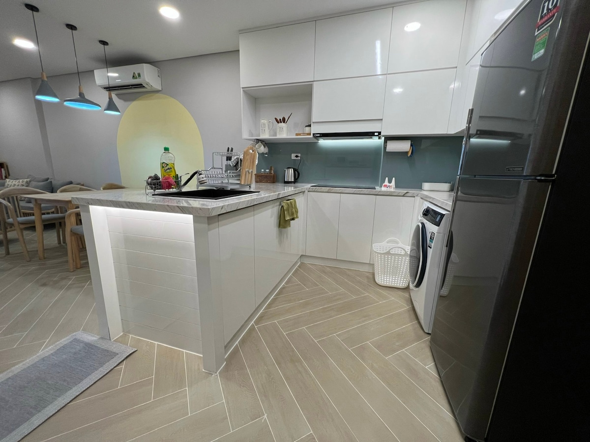 Vrhunski stan sa prelepim pogledom u centru grada Long Ksijen. - U blizini lokalnih pijaca i supermarketa: Coop, Vincom, Mega, Walking Street, Noćna pijaca, crkva, univerzitet. - 68 m2 sa 2 spavaće sobe, 2 toaleta, 1 dnevnim boravkom potpuno opremljenim modernim namještajem: TV ravnog ekrana, frižiderom, 2 kauča na razvlačenje, trpezarijskim stolom, mikrotalasnom pećnicom, elektromagnetnim šporetom, mašinom za pranje veša, klima uređajem, bojlerom, aspiratorom... Samo ponesite kofer